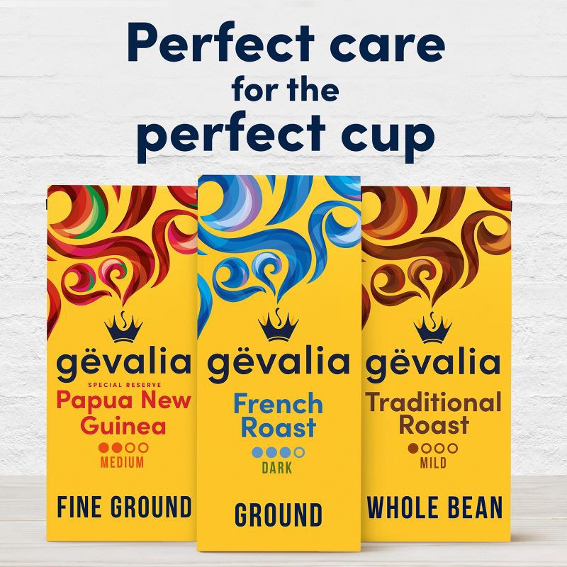 - Gevalia French Roast Dark Roast Ground Coffee provides the perfect care for the perfect cup
