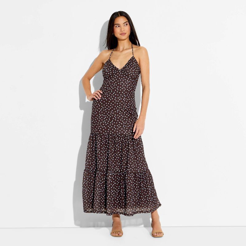 Women's Maxi Triangle Halter Dress - Wild Fable™ Brown Polka Dots S
