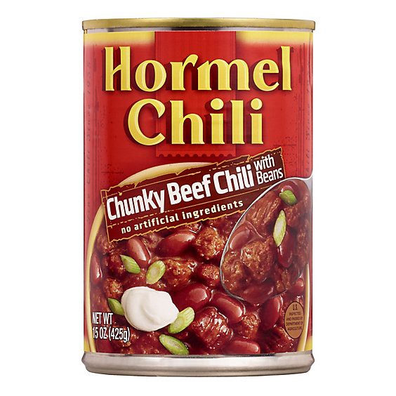 Ingredients: Water, Beef, Beans, Concentrated Crushed Tomatoes, Contains 2% or less of Modified Cornstarch, Textured Vegetable Protein (Soy Flour, Caramel Color), Corn Flour, Chili Powder (Chili Peppe…