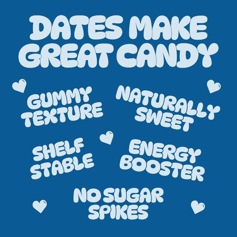 - Real Fruit: We use whole California dates - nature's candy. Each date delivers real fruit goodness packed with fiber, vitamins, and minerals. This provides a chewy, gummi-like texture that makes every bite both wholesome and indulgent.