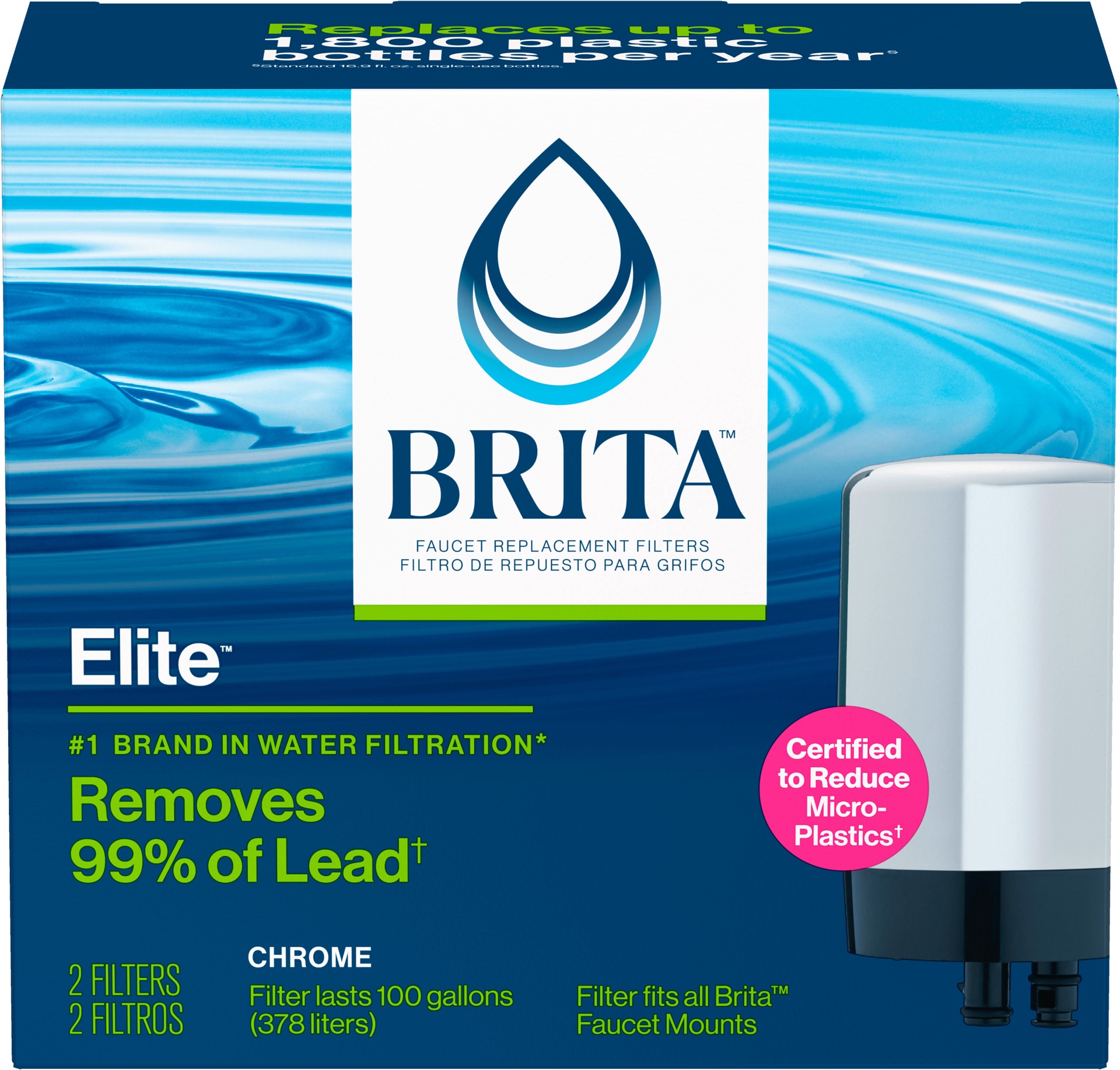 - Brita faucet replacement filters are compatible with both Elite and Elite Advanced tap water filter systems and are available in white and chrome color options