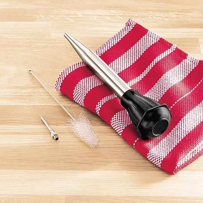 Constructed of durable 188 stainless steel tube with a silicone squeeze bulb, the turkey baster keeps food moist and juicy during long, slow cooking times. The 3Piece set also includes an injector nee…