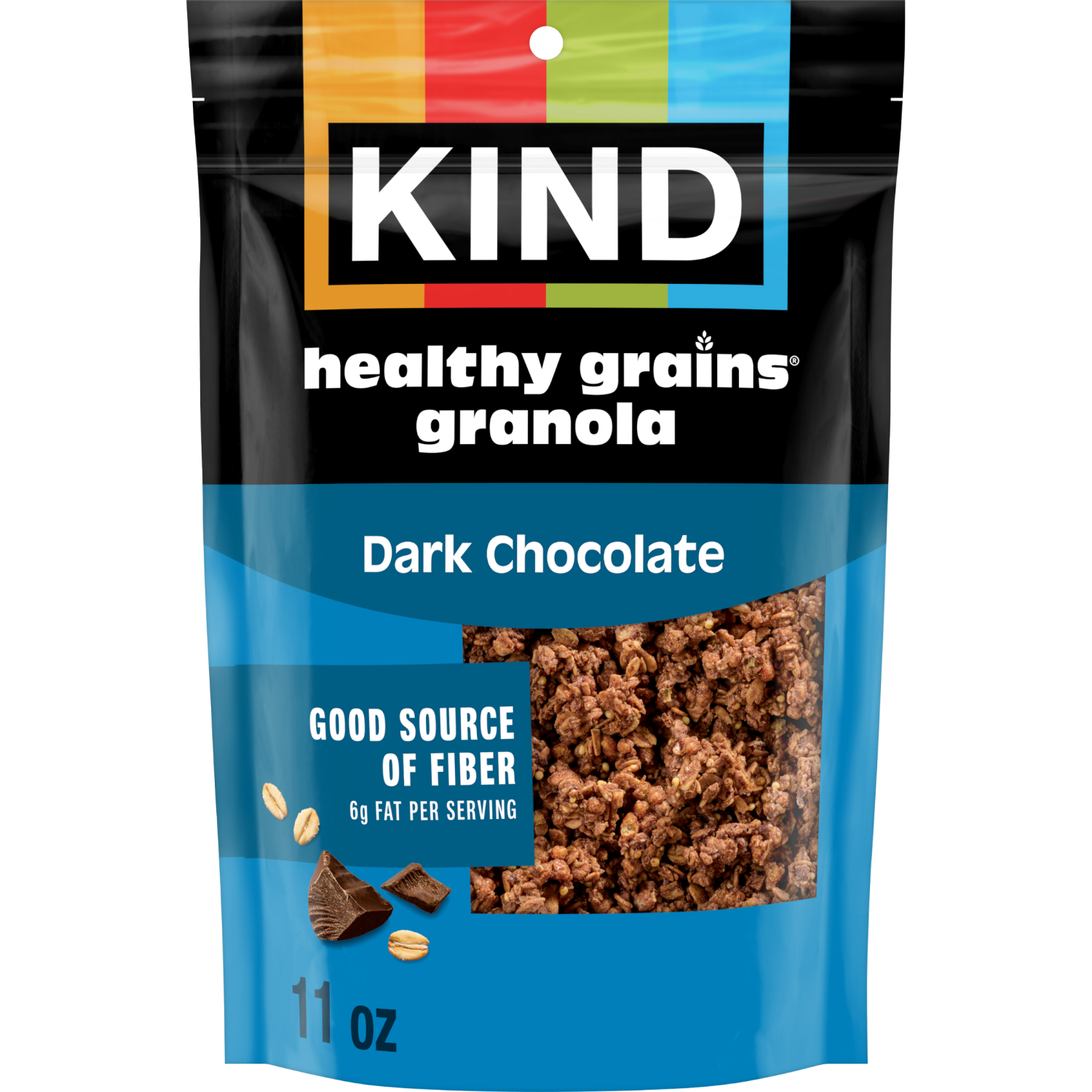 KIND HEALTHY GRAINS Dark Chocolate clusters are an all-in-one, convenient, hand-to-mouth healthy, protein packed snack mix. These wholesome clusters have 10 grams of protein and 34 grams of whole grai…