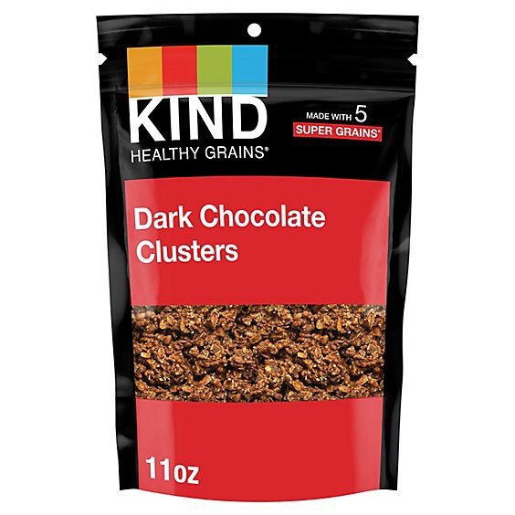 KIND HEALTHY GRAINS Dark Chocolate clusters are an all-in-one, convenient, hand-to-mouth healthy, protein packed snack mix. These wholesome clusters have 10 grams of protein and 34 grams of whole grai…