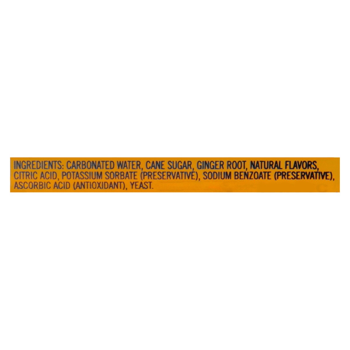 Carbonated Water, Cane Sugar, Ginger Root, Natural Flavors, Citric Acid, Potassium Sorbate (Preservative), Sodium Benzoate (Preservative), Ascorbic Acid (Antioxidant), Yeast.