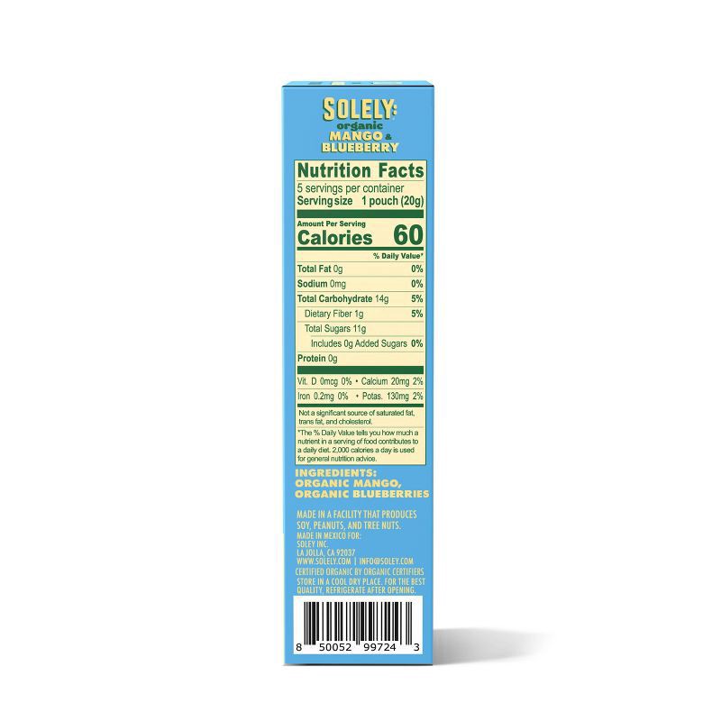 Solely® Organic Mango and Blueberry Fruit Gummies are made with only 2 Ingredients: Organic Mango and Organic Blueberry. One full serving of fruit! We believe in transparency, and we use whole and sim…
