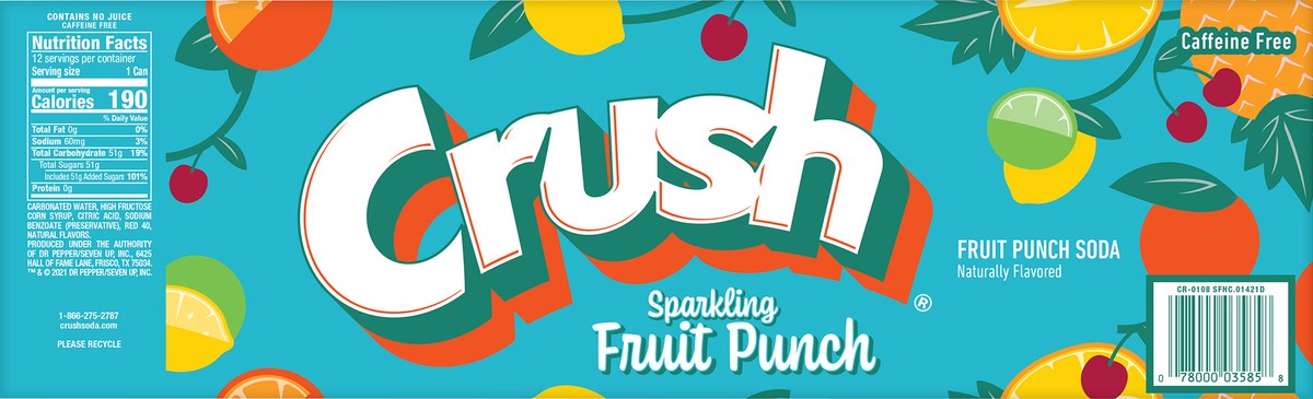 Crush Soda, Caffeine Free, Sparkling, Fruit Punch
