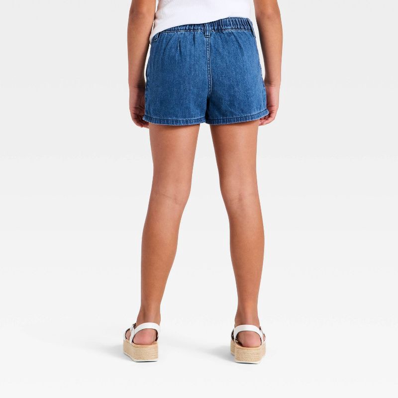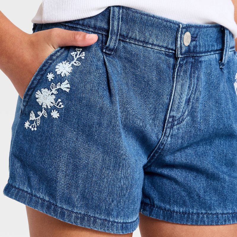 Girls' Mid-Rise Floral Embroidered Pocket Jean Shorts - Cat & Jack™ Dark Wash M
