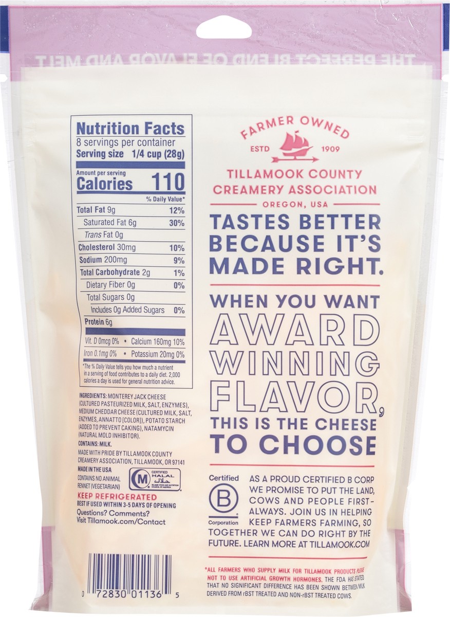 Take home a meltier cheese with Tillamook Farmstyle Thick Cut Cheddar Jack Cheese Blend Shredded Cheese that is cut thicker from the block. Featuring shredded monterey jack cheese and shredded cheddar…
