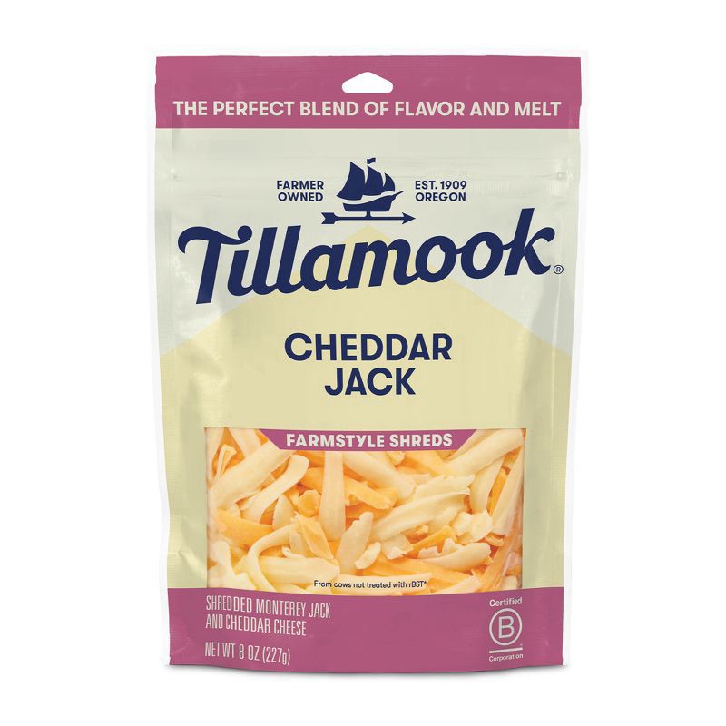 Tillamook Farmstyle Thick Cut Shredded Cheese, Cheddar Jack, 8 oz