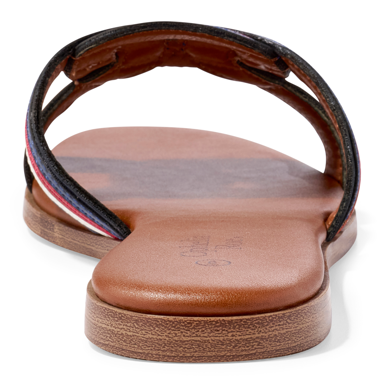 Designed for everyday wear, these flats feature a sleek silhouette with a vibrant multi-color strap/band that adds a playful pop of color to any outfit.