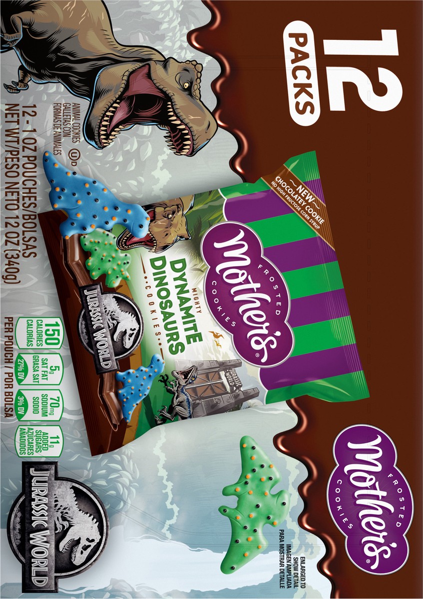 Mother''s Jurassic World Mighty Dynamite Dinosaurs Frosted Animal Cookies 12 - 1 oz Pouches
