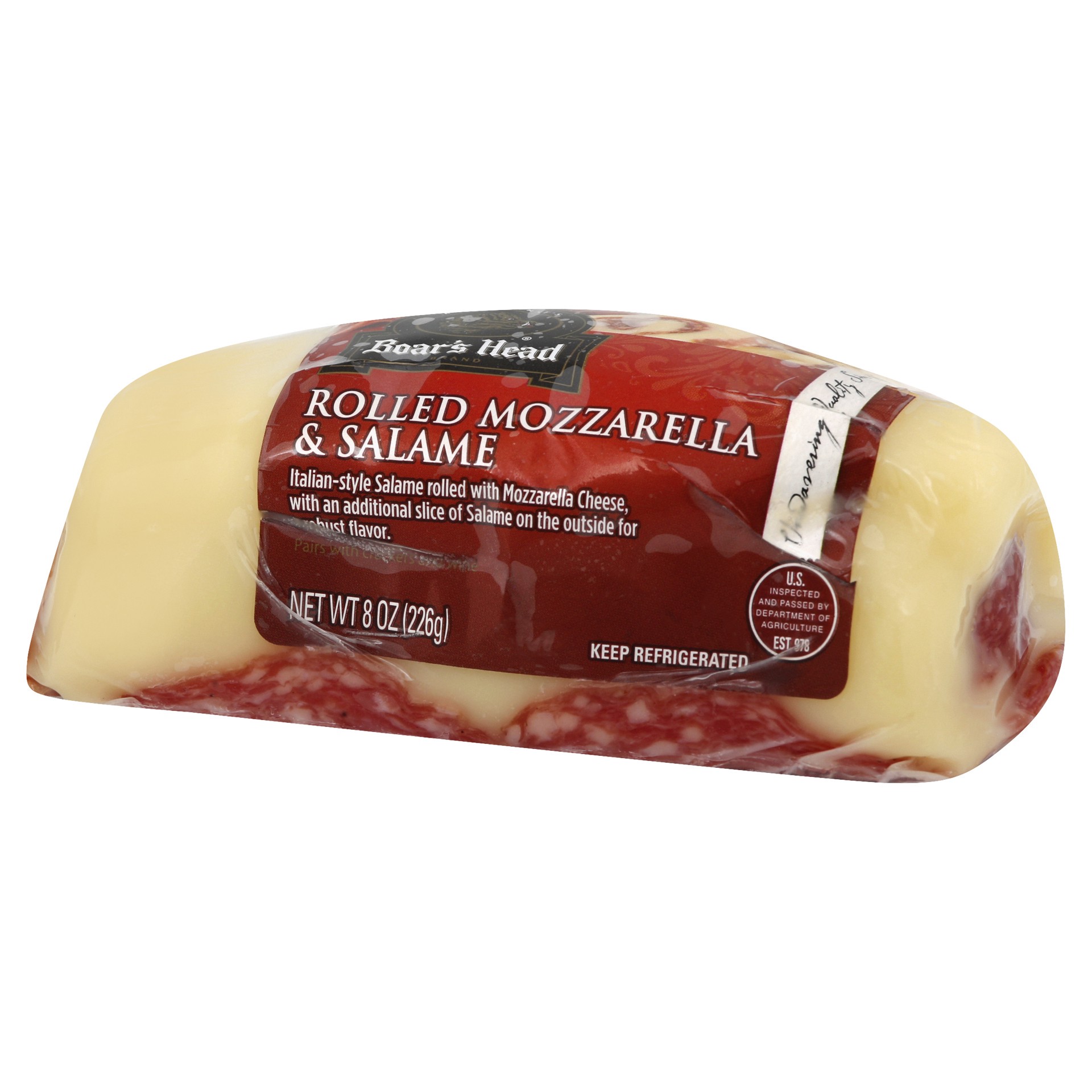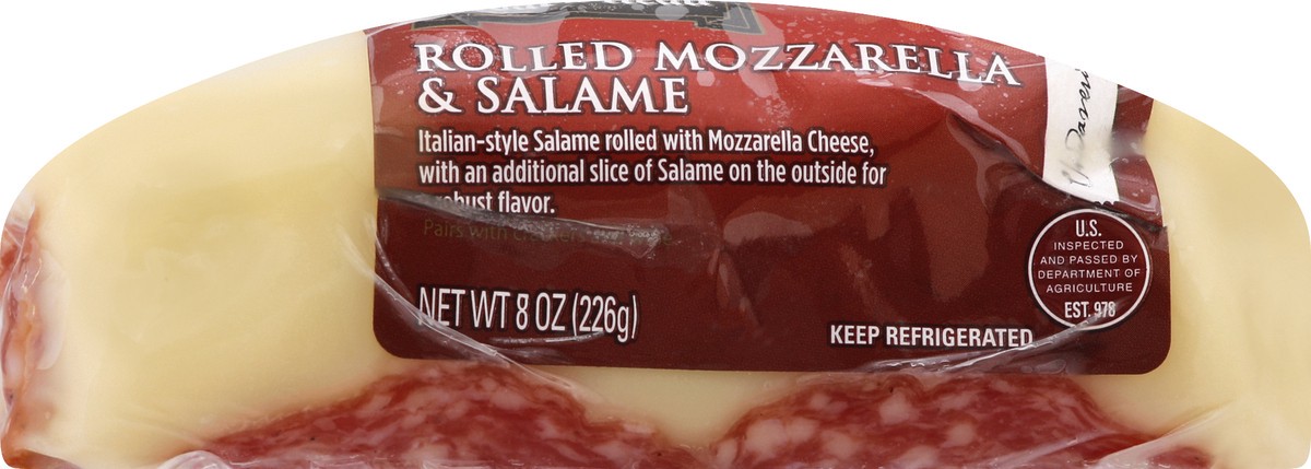 Sweet Italian-style Salame rolled with Mozzarella Cheese, with an additional slice of Salame on the outside for a robust flavor.