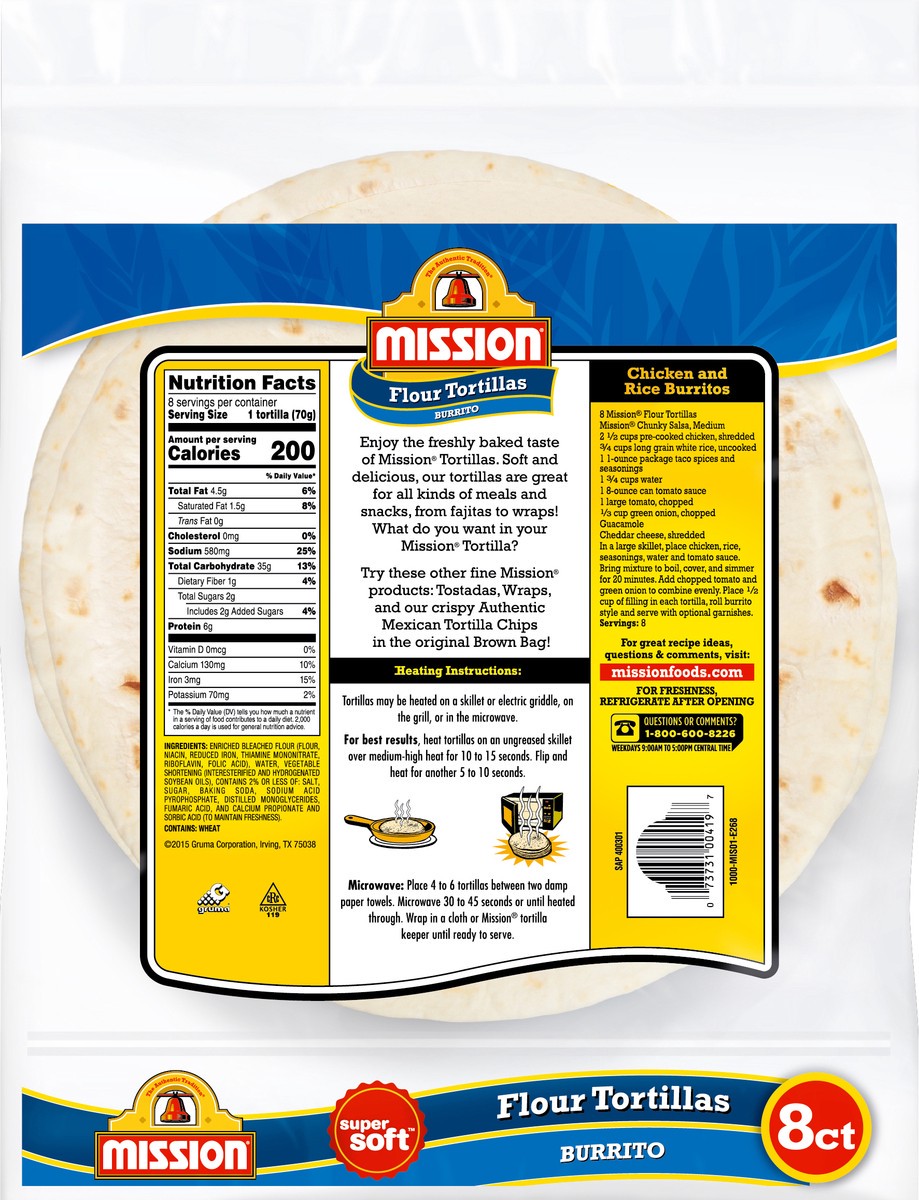 Mission Super Soft Flour Tortillas Burrito Size - 8 Count
