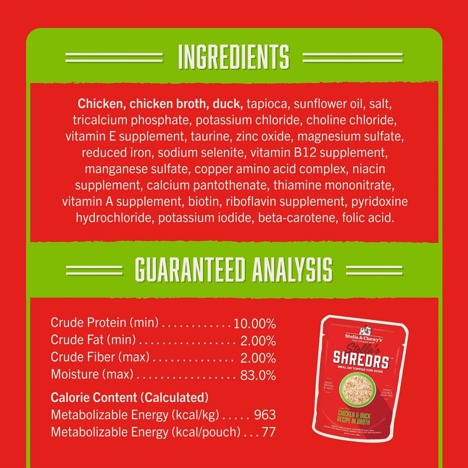Stella & Chewy's Shredders Cage Free Chicken & Duck Recipe in Broth Wet Dog Food, 2.8 oz