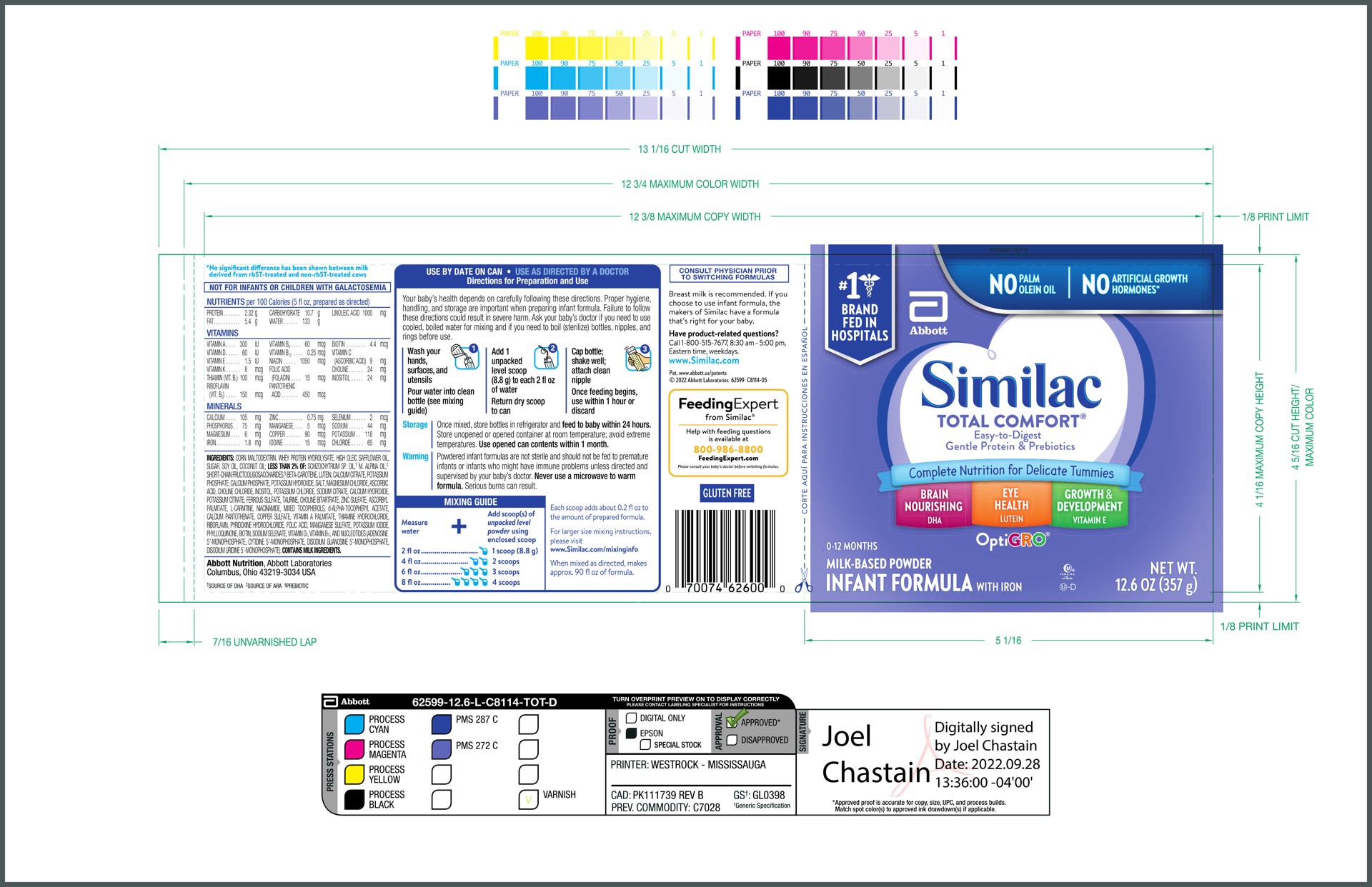 Similac Total Comfort Milk Based Powder Infant Formula With Iron In Can - 12.6 Oz