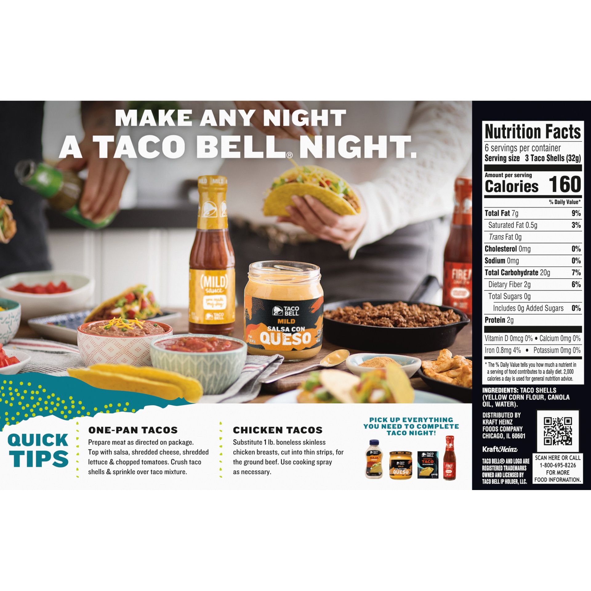 Live más at home with our Taco Bell Crunchy Taco Shells. Taco Bell makes mealtime more craveable with our crunchy taco shells made with yellow corn flour. Add your favorite protein cooked with Taco Be…
