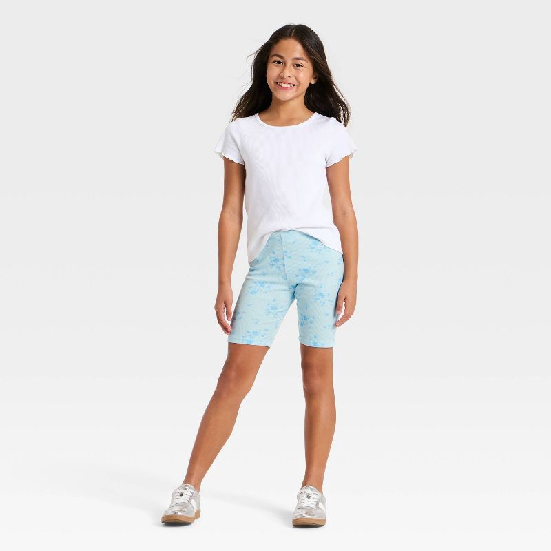 Girls' Ribbed Floral Bike Shorts - Cat & Jack™ Blue XL