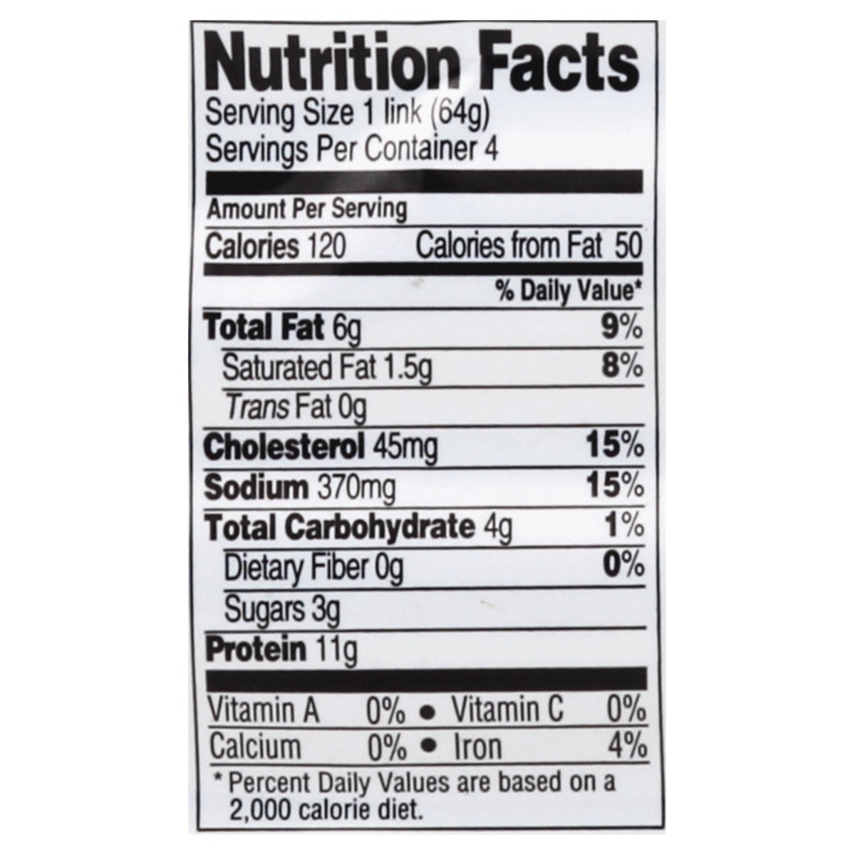 70% less fat than USDA data for cooked pork sausage (fat is reduced from 20 g to 6 g per 64 g serving). Fully cooked. Est 1985. Protectors of excellence. Revered by 4 star restaurant chefs. All natura…