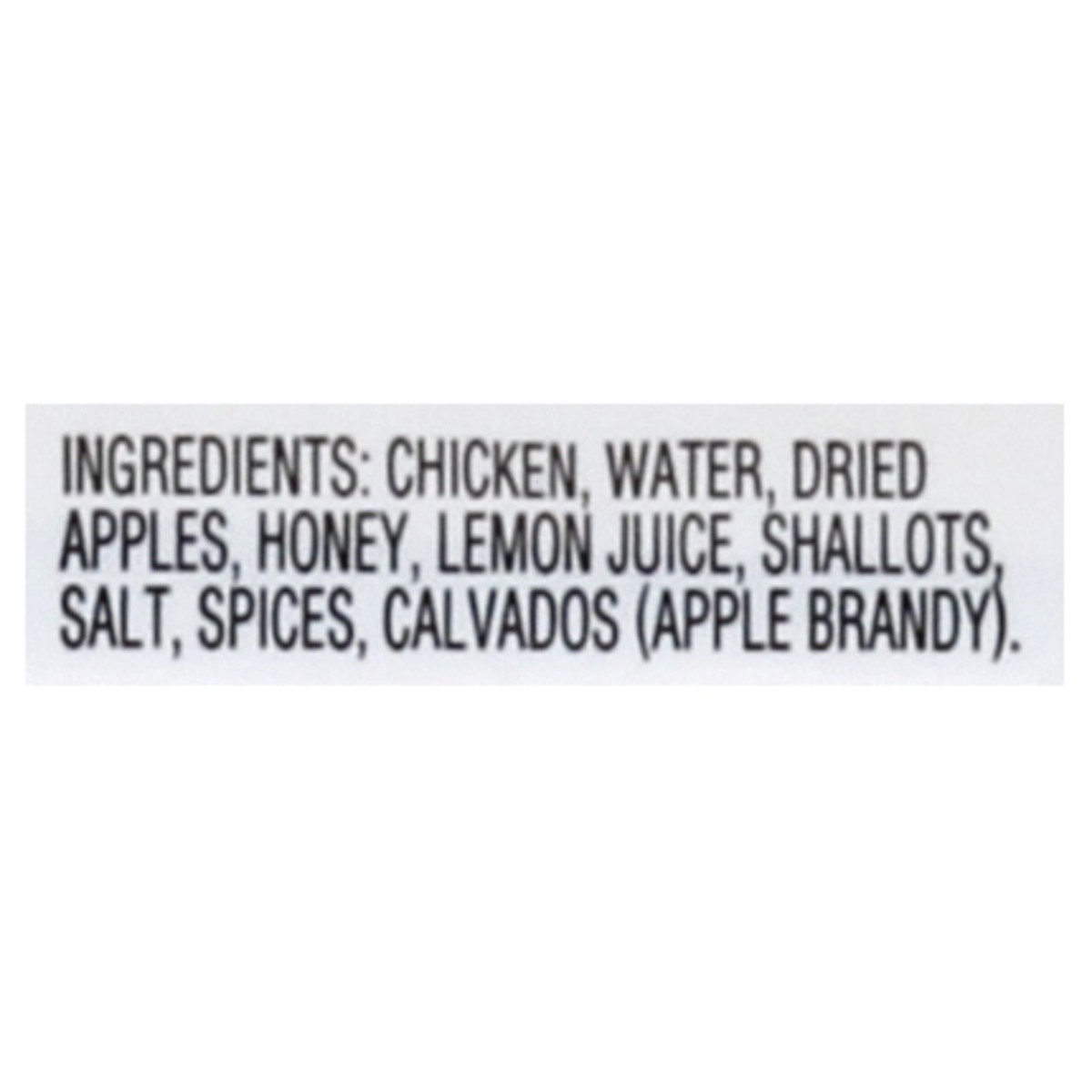 Chicken, Water, Dried Apples, Honey, Lemon Juice, Shallots, Salt, Spices, Calvados (Apple Brandy).