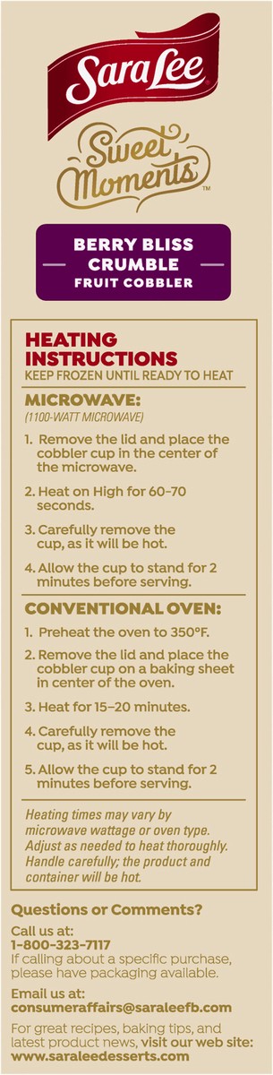 Sara Lee Real strawberries, blueberries, raspberries, and blackberries come together beneath a golden streusel in this perfectly portioned cobbler. it's a cozy treat ready in as little as 60 seconds i…