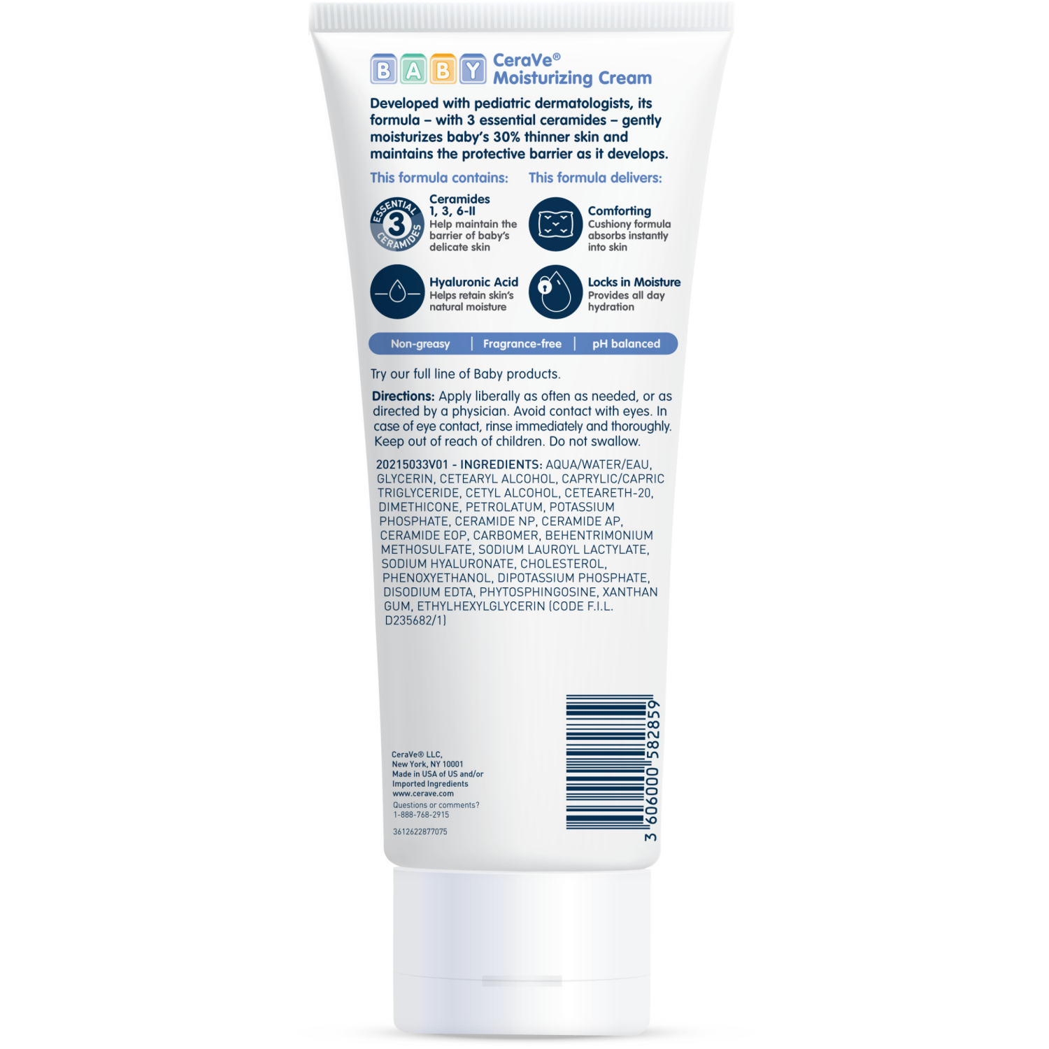 CeraVe Baby Moisturizing Cream is developed with pediatric dermatologists to provide comforting all-day moisture, important for baby’s skin. Our formula has three essential ceramides that help maintai…