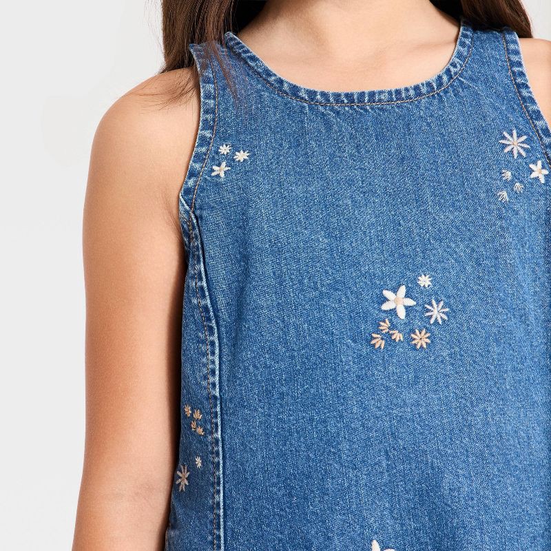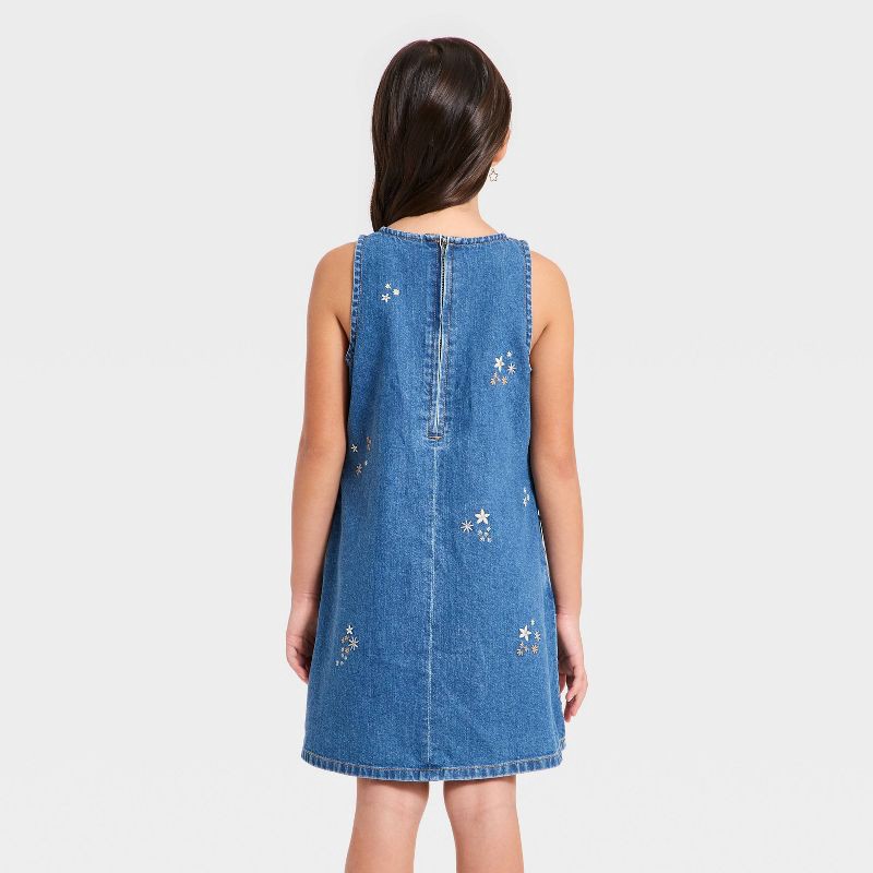 Girls' Embroidered Denim Shift Dress - Cat & Jack™ Medium Wash S