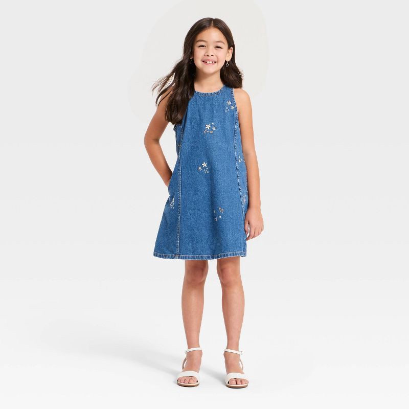 Bring effortless charm to their everyday wardrobe with this Embroidered Denim Shift Dress from Cat & Jack™. Made from a fabric blend of cotton, recycled cotton and spandex, this sleeveless dress keeps…