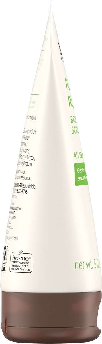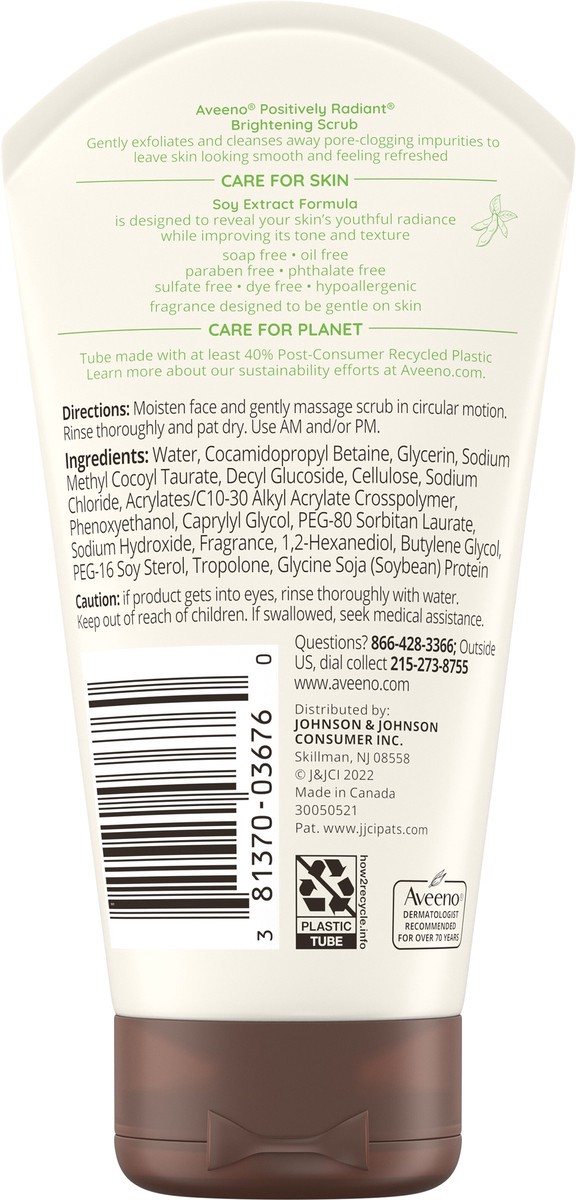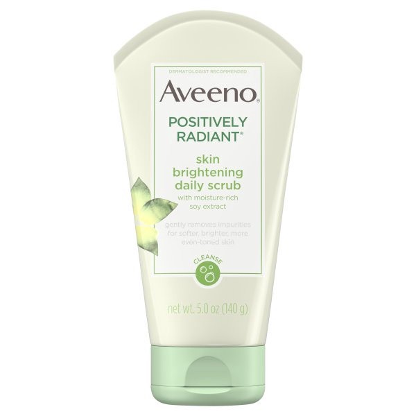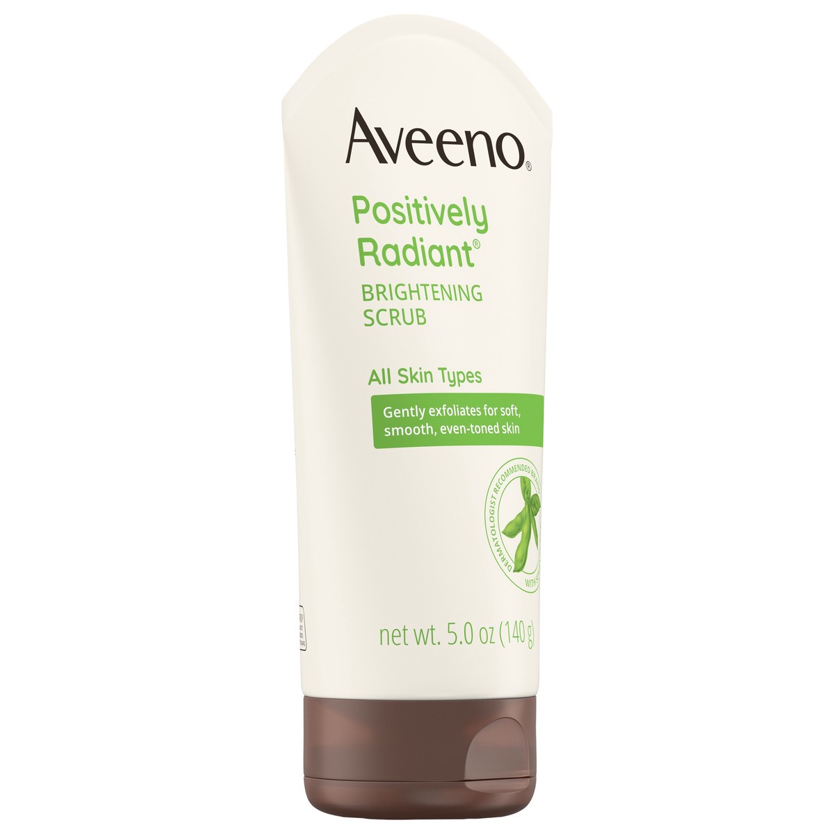 - 5-ounce tube of Aveeno Positively Radiant Skin Brightening & Exfoliating Daily Face Scrub cleanses & buffs away dead skin, surface impurities, & oil for softer, brighter skin. This scrub helps improve skin''s tone & texture & reveals radiant-looking skin