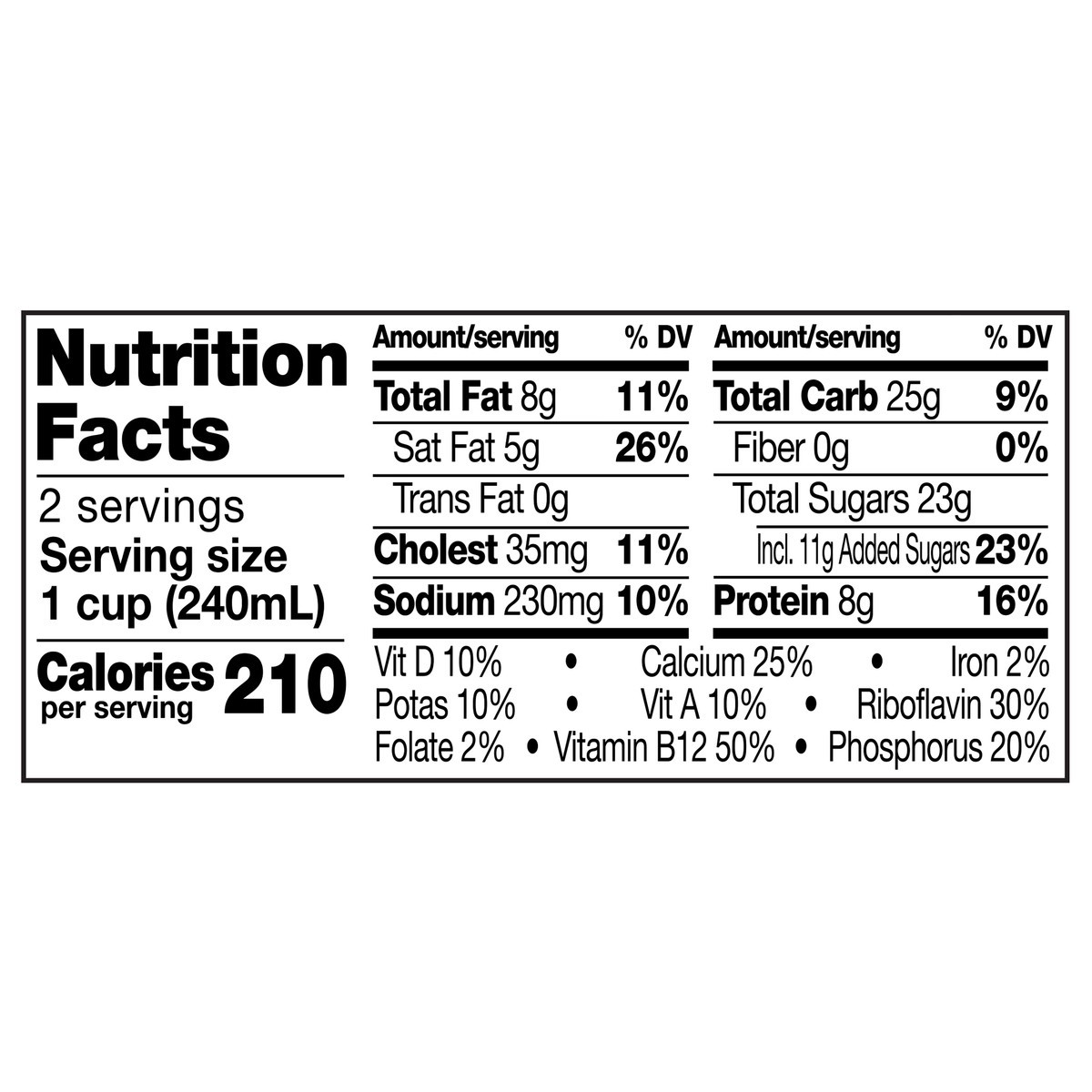 Ingredients: Milk, liquid sugar (sugar, water), less than 1% of cocoa (processed with alkali), corn starch, salt, carrageenan, natural flavor, nonfat milk, vitamin D3.