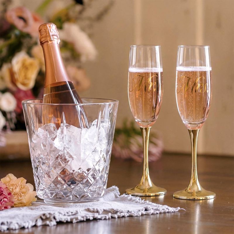 Celebrate love and new beginnings with this elegant Mr. and Mrs. champagne flute set, beautifully designed for unforgettable wedding toasts. Each clear glass flute features stylish gold script letteri…