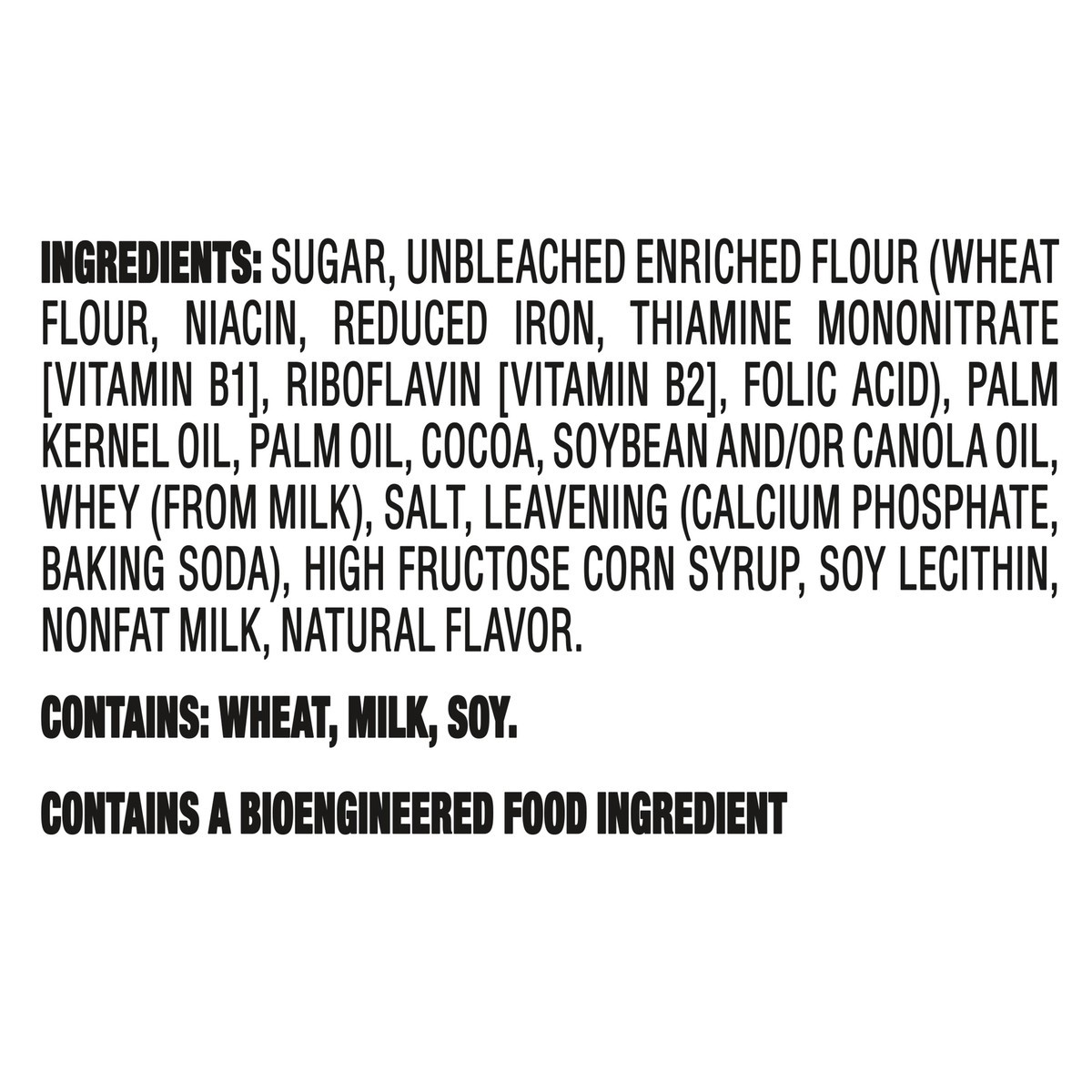 INGREDIENTS: SUGAR, UNBLEACHED ENRICHED FLOUR (WHEAT FLOUR, NIACIN, REDUCED IRON, THIAMINE MONONITRATE [VITAMIN B1], RIBOFLAVIN [VITAMIN B2], FOLIC ACID), PALM KERNEL OIL, PALM OIL, COCOA, SOYBEAN AND…