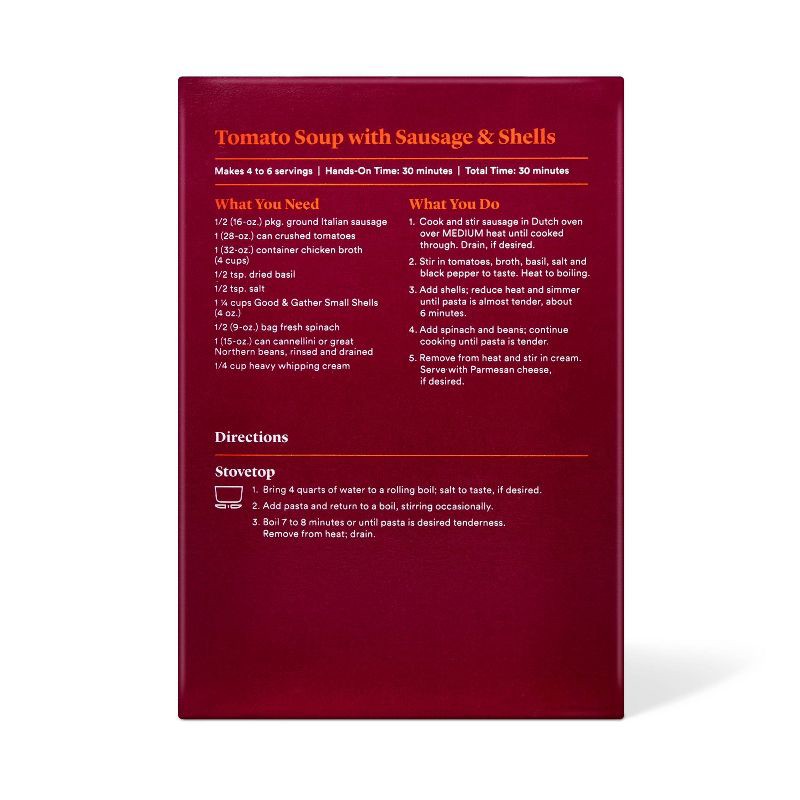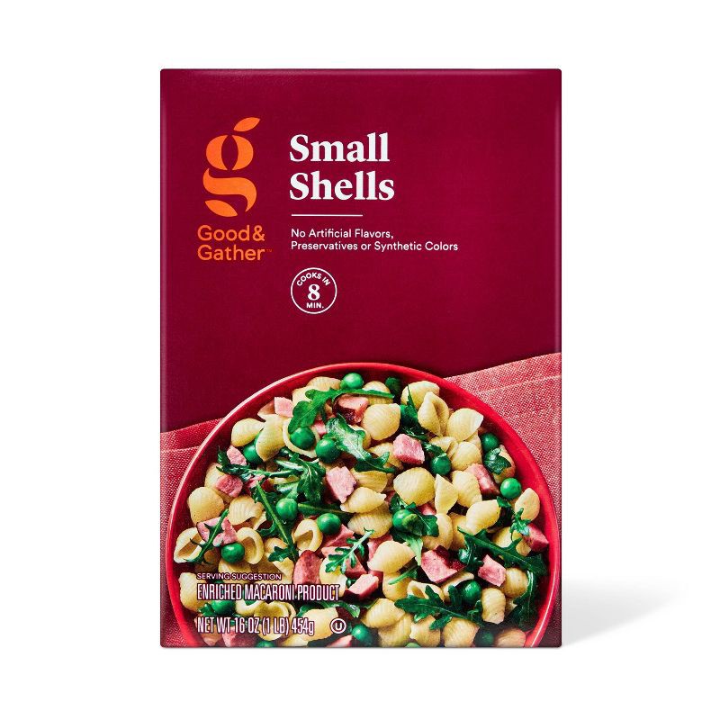 Transform any weeknight entree into a delicious, hearty dish with the Small Shells from Good & Gather™. This pasta is made with no artificial flavors, preservatives or synthetic colors. The small shel…