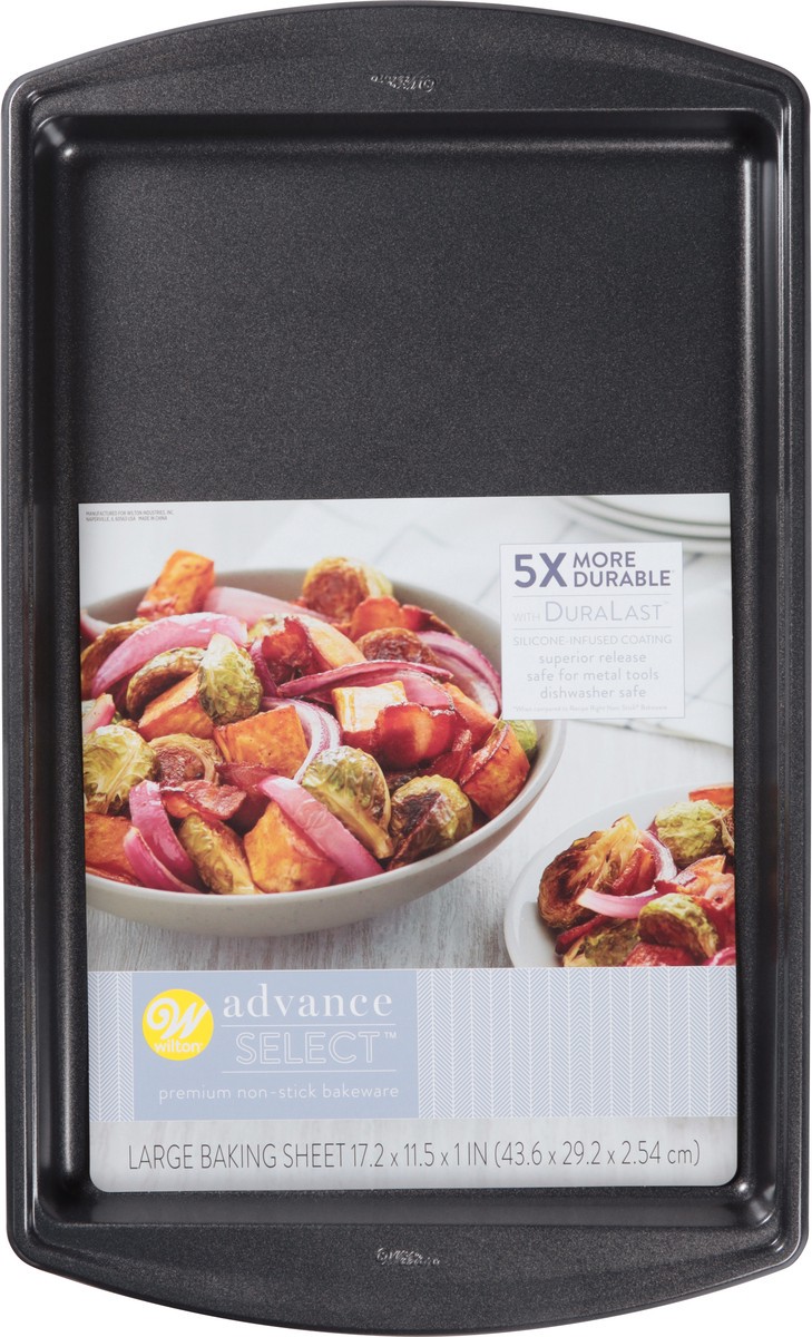 For an exceptional baking experience use the Wilton Advance Select Nonstick Baking Sheet.An infused, nonstick coating and steel design allows for even heat distribution and clean food release. Make yo…