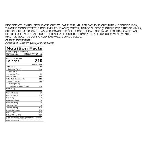 Fresh from Meijer Unsliced Asiago Bagels 5pk