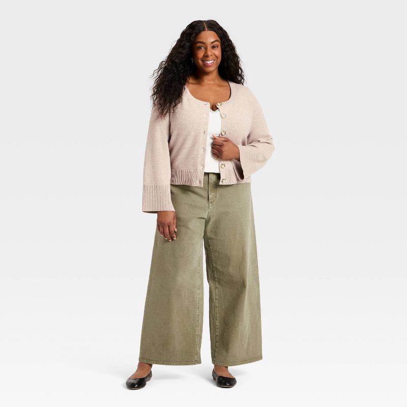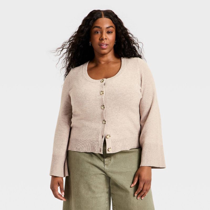 Women's Button-Down Scoop Neck Cardigan Sweater - Universal Thread™ Taupe XXL