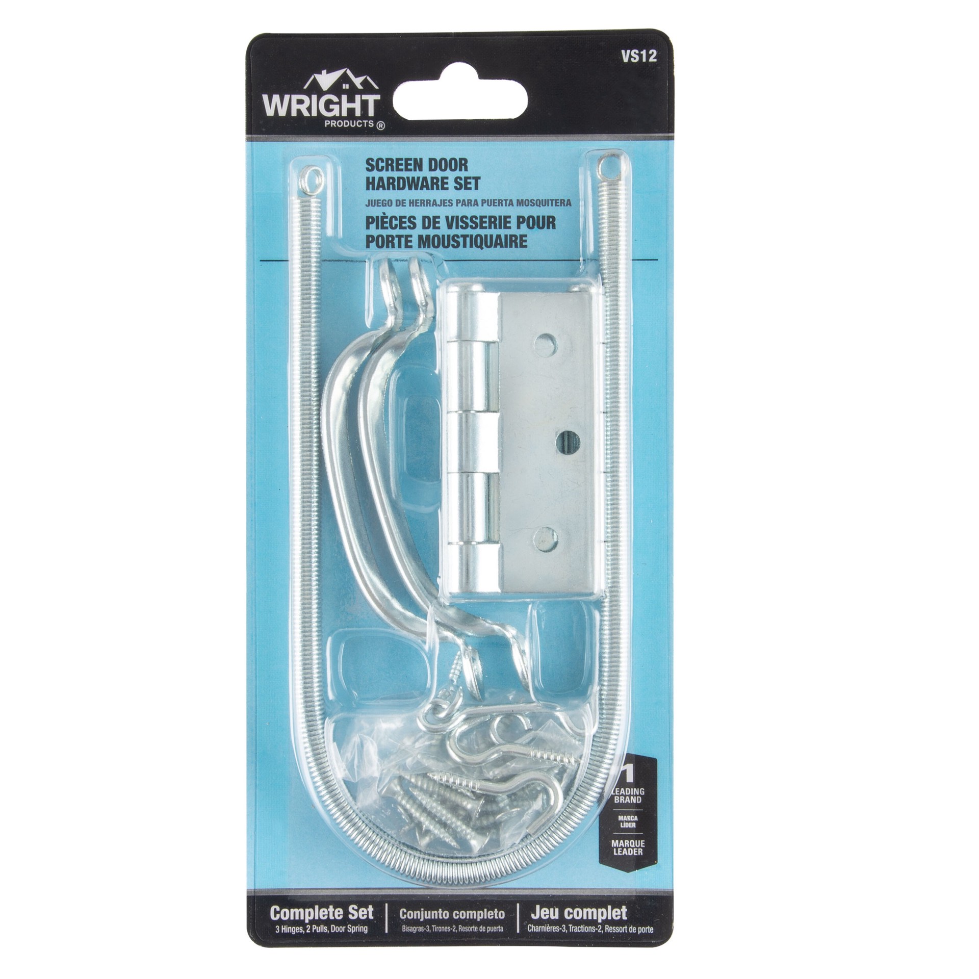 IDEAL APPLICATION: Wright Products hardware kit has all the components you need to install a screen door.. COMPLETE KIT: Contains (3) 3-in hinges, (2) pull-handles, (1) #5 door spring, (1) hook and ey…