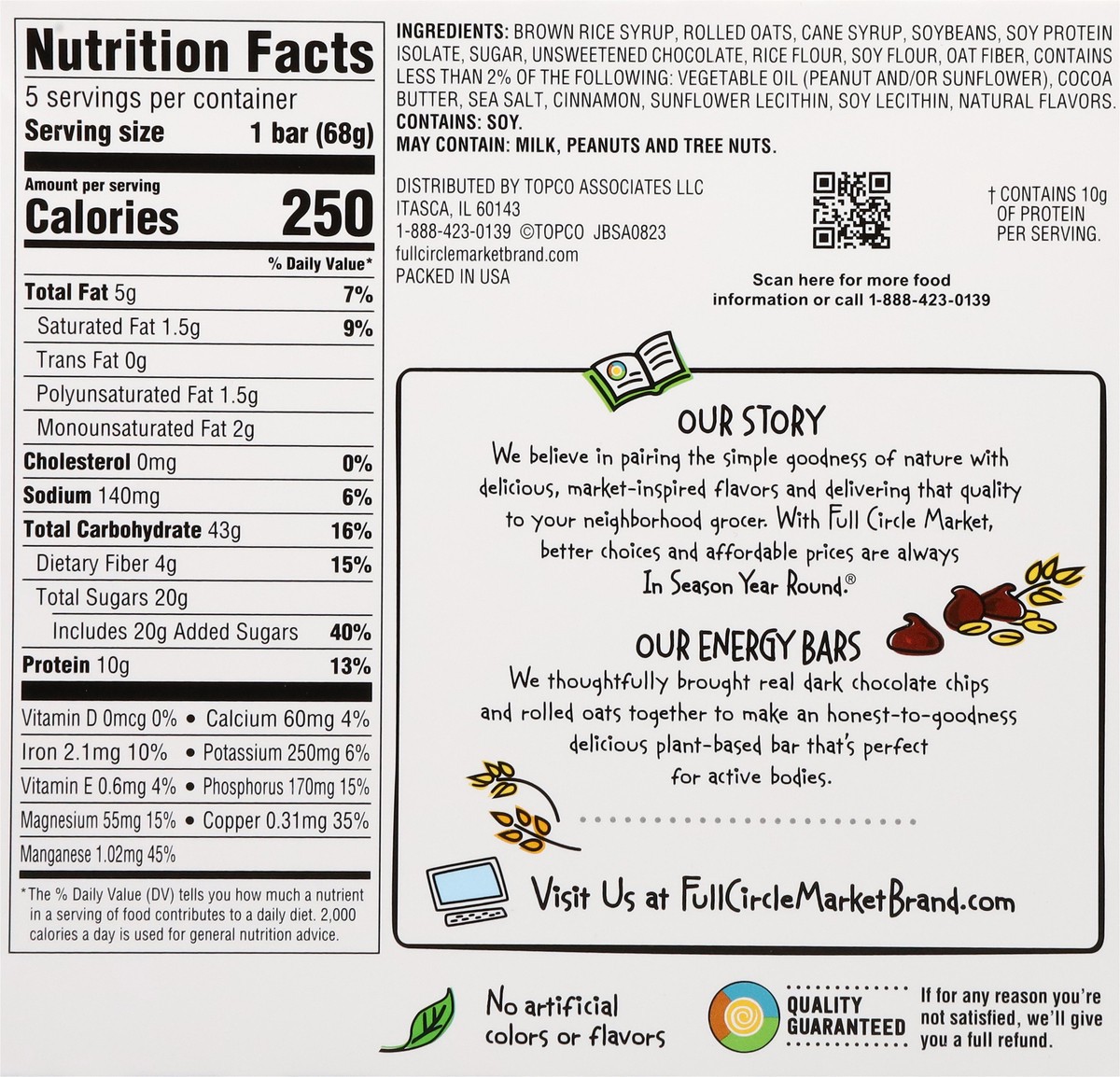 Full Circle Market Chocolate Chip Energy Bars - 5-2.4 oz Bars