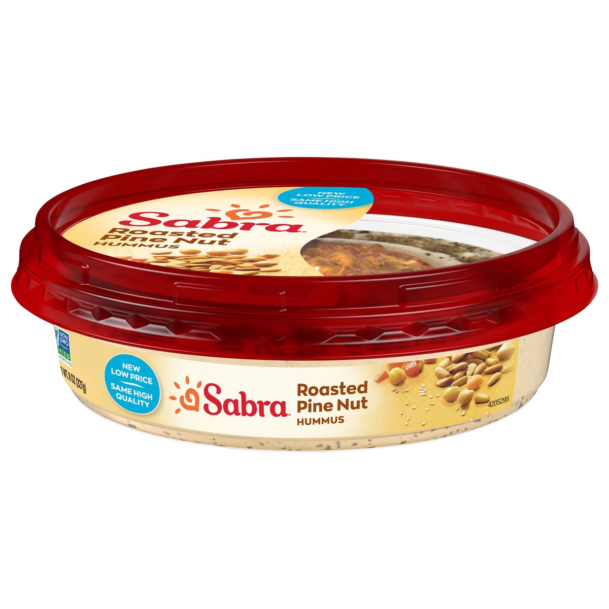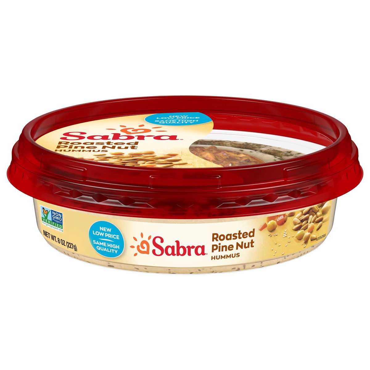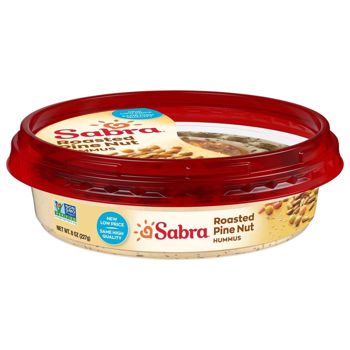 This smooth, creamy texture makes this the perfect dip! Roasted pine nuts give a buttery flavor and nutty sweetness to our blend of chickpeas and tahini. Sabra® responsibly sources all our chickpeas f…