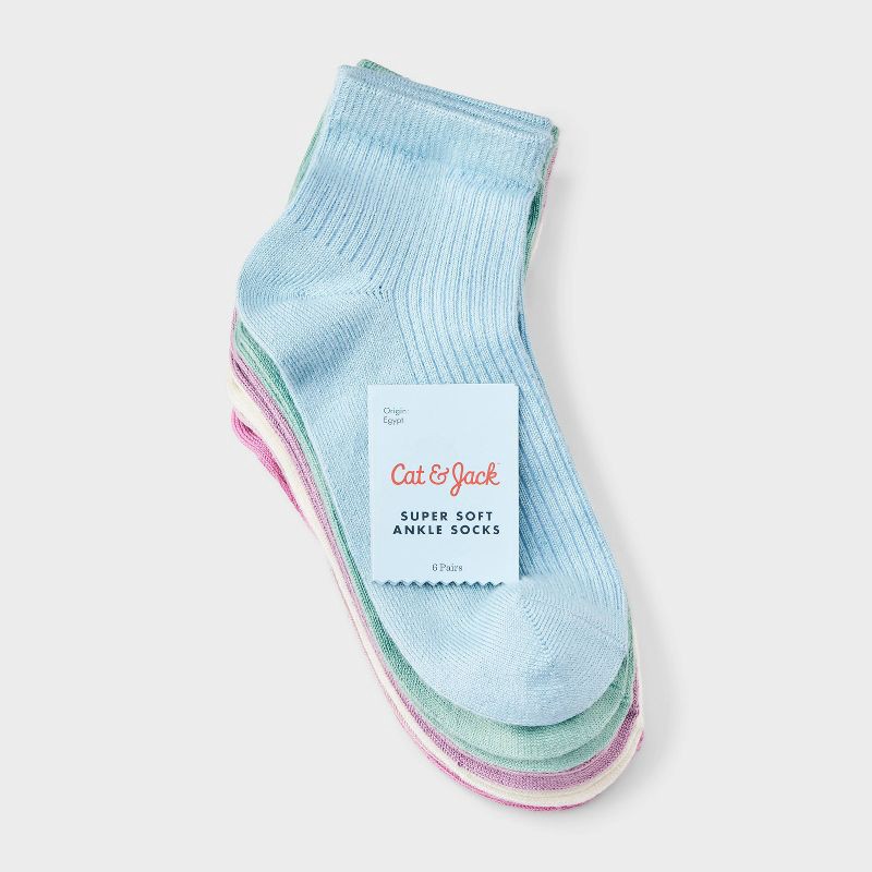 Girls' 6pk Super Soft Ankle Socks - Cat & Jack™ Blue S