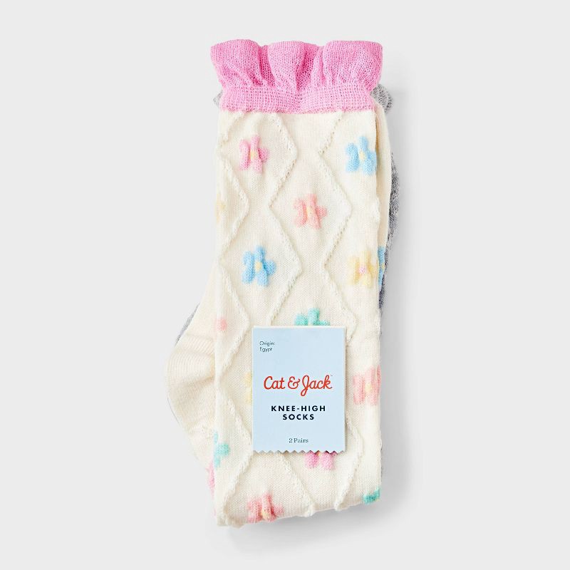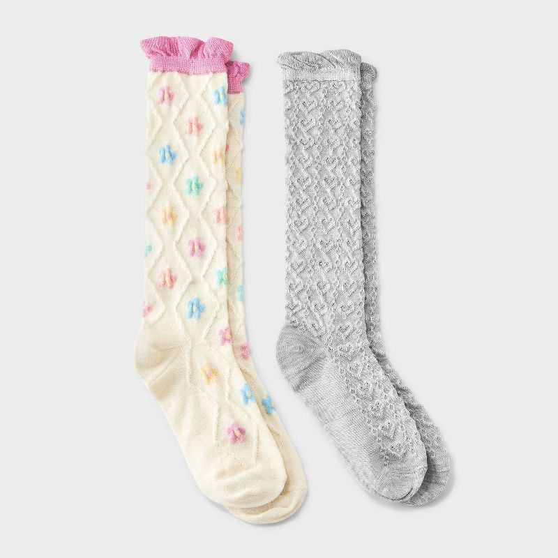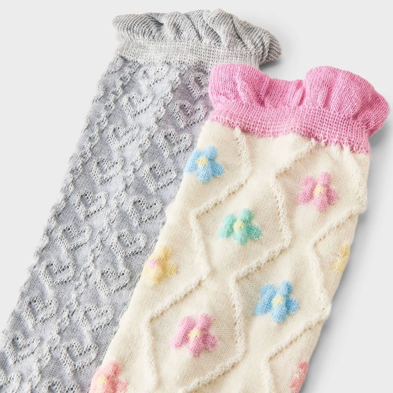 Girls' 2pk Textured Floral & Hearts Ruffle Knee High Socks - Cat & Jack™ Ivory M