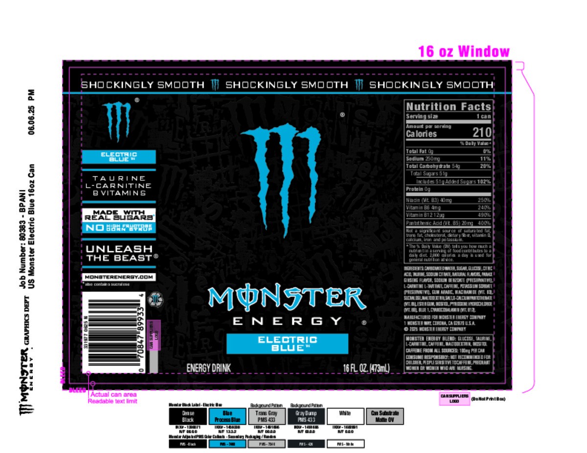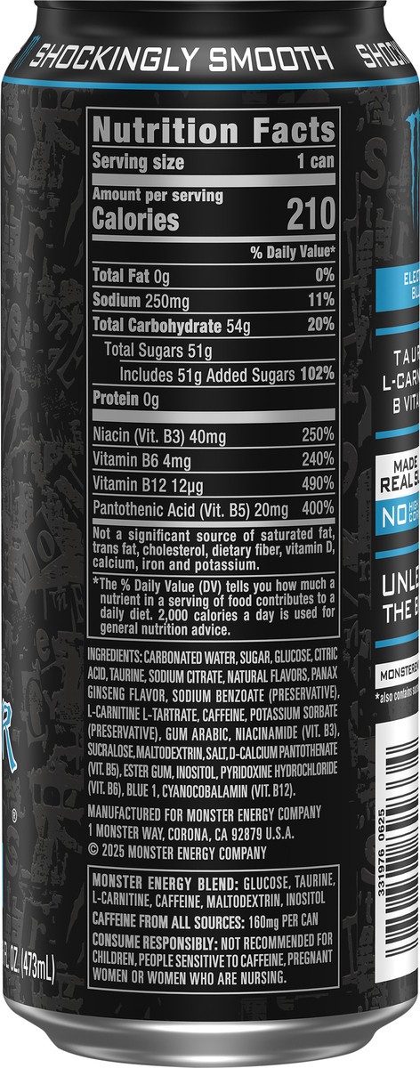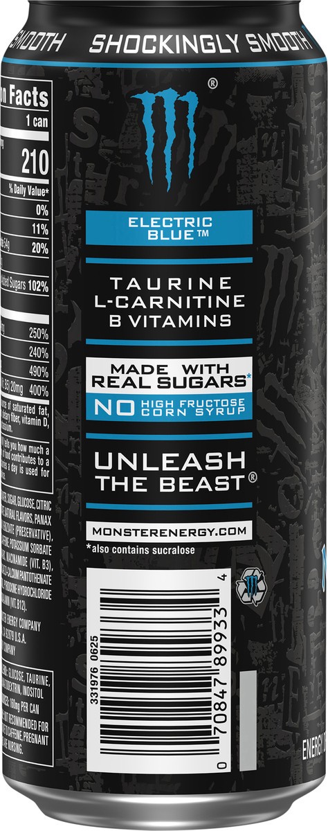 Unleash the Beast with Monster Flavors! Drenched in our signature style, these cans pop with color and attitude, screaming Monster from every angle. Monster Energy® Electric Blue™ features a shockingl…