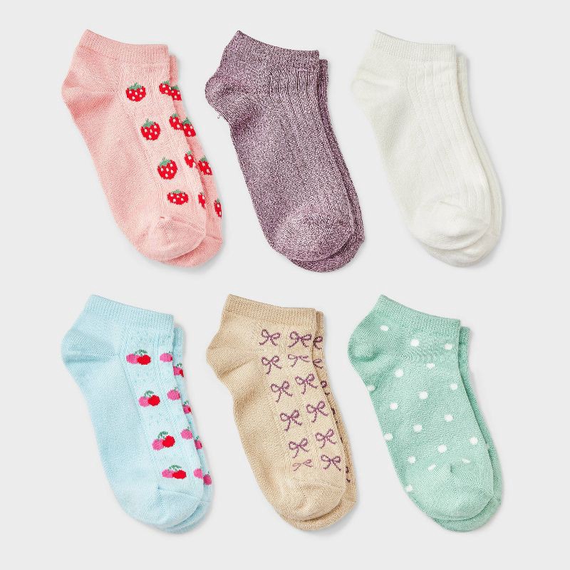 Bring fresh style to their feet with these Fruit & Bows Pointelle Super-Soft No-Show Socks from Cat & Jack™. This six-pack set includes no-show pointelle socks in assorted colors featuring a variety o…