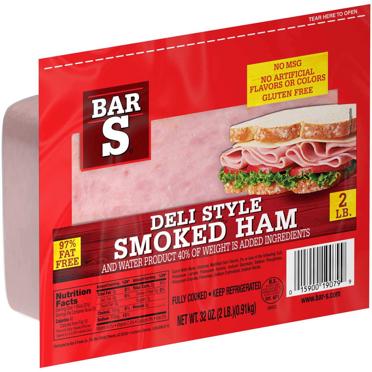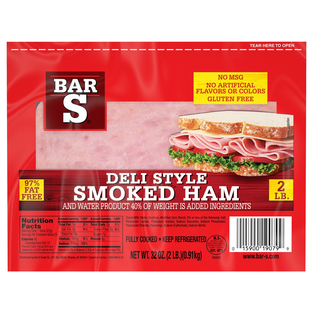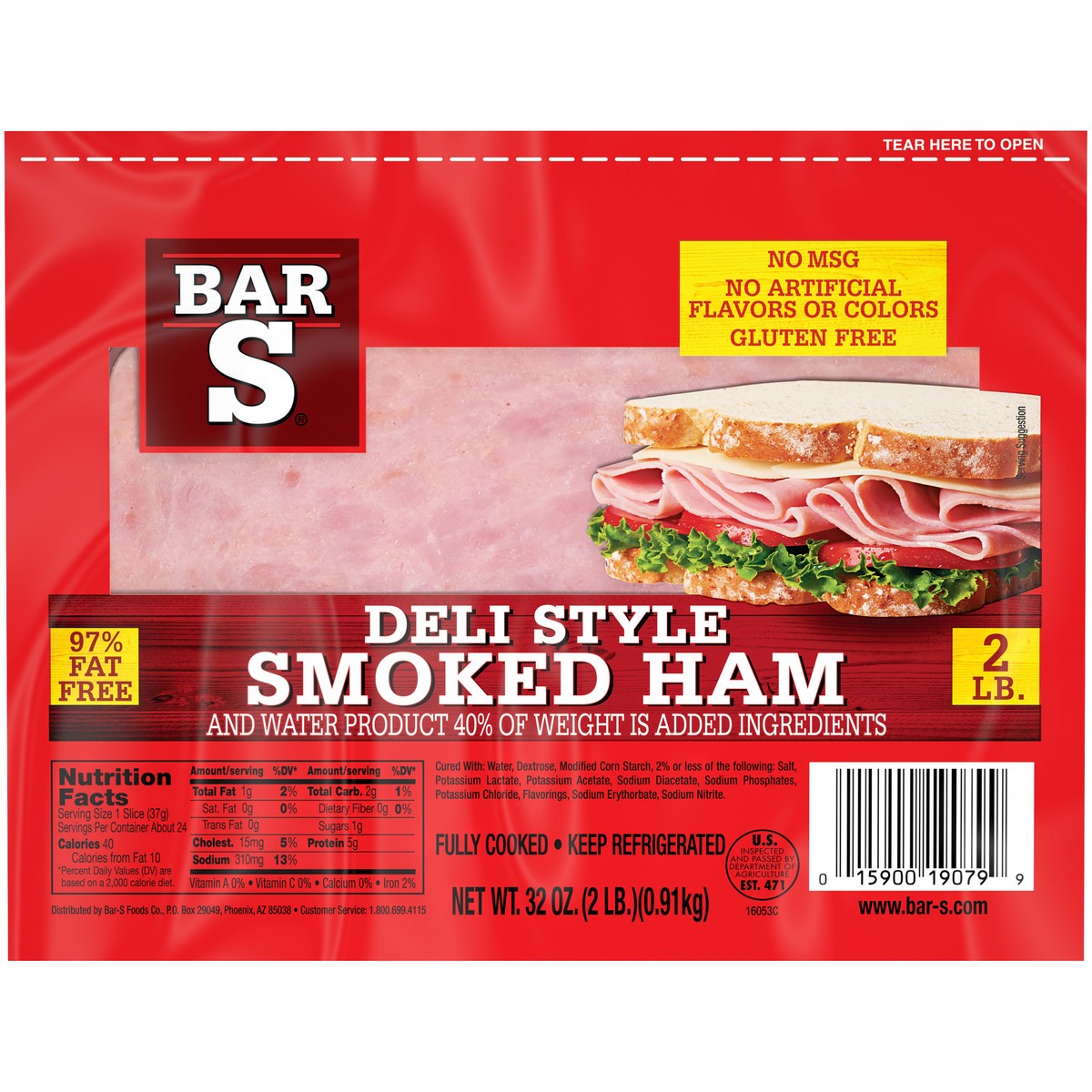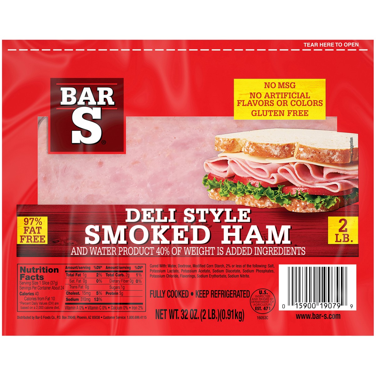 No artificial flavors or colors. Gluten free. No MSG. 97% fat free. Fully cooked. And water product 40% of weight is added ingredients U.S. Inspected and passed by Department of Agriculture. www.bar-s…