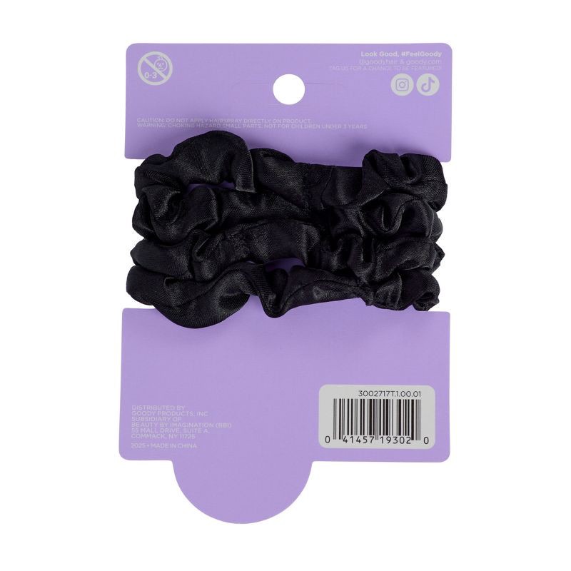 Goody Satin Scrunchies - Black - 4ct: For All Hair Types, Includes Elastic, Nylon Material