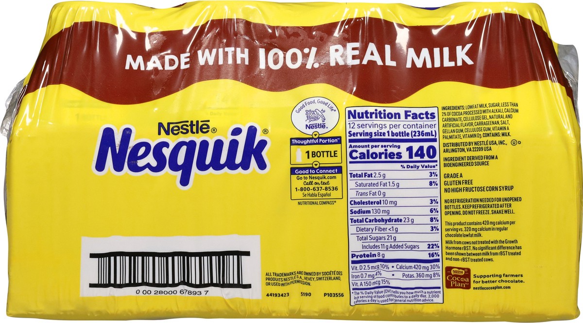 Start your day off right with Nesquik Chocolate Low-Fat Milk: The perfect way to begin your morning! Satisfy the bunny in you in a snap with this twelve -pack of Nesquik Chocolate Low-Fat Milk. Just c…