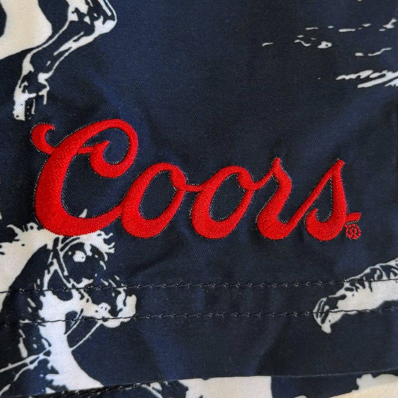 Show your love for a classic American beer with these Coors 5-Inch Swim Trunks. Made from polyester twill fabric with a mesh liner, these trunks provide classic coverage and are designed in navy blue …