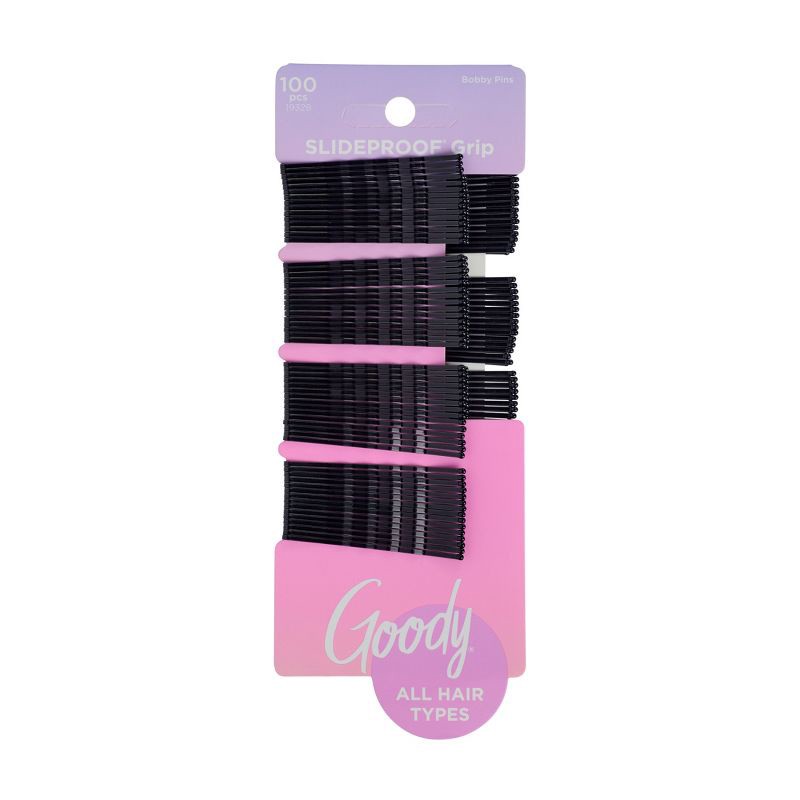 - Trusted. Tested. Loved._x000D_Goody Bobby Pins deliver reliable performance that's been tried, trusted, and loved by generations—because your hair deserves proven quality. These bobby pins have stood the test of time, offering secure hold and everyday dependability for all your styling needs. Whether you're creating classic looks or experimenting with new styles, you can count on Goody Bobby Pins to keep your hair perfectly in place.SlideProof Grip® - Made to hold, Goody Bobby Pins are expertly designed to keep any hairstyle securely in place all day long. Whether you're heading out for the night or performing at a dance competition, these bobby pins deliver reliable grip so you can move with confidence and keep your hair perfectly intact from morning to night. Their SlideProof technology ensures styles stay put, even through active moments, giving you dependable hold and effortless style wherever you go.All Day Comfort - Experience a secure hold that never sacrifices comfort with Goody Bobby Pins. Thoughtfully designed for everyday wear, these pins provide a tension-free grip that won't cause headaches, breakage, or discomfort. Their gentle hold keeps your hair in place without pulling, making them perfect for sensitive scalps and long days when you need your style to stay intact from morning to night.Versatile Styles - Goody Bobby Pins are perfect for adding stylish accents and securing small sections of hair with ease. Whether you're creating delicate twists, pinning back bangs, or creating intricate updos, these pins offer an elegant touch to any look. Their slim design makes them ideal for precise styling, and they seamlessly complement every outfit while adapting to any hair type. Enjoy the confidence of knowing your hair will stay secure, polished, and chic for any occasion.For All Hair Types - Whether your hair is thick, fine, curly, or straight, Goody Bobby Pins deliver reliable hold for any style. With a gentle and secure grip, our bobby pins make it easy for everyone to achieve comfortable, damage-free looks every day.