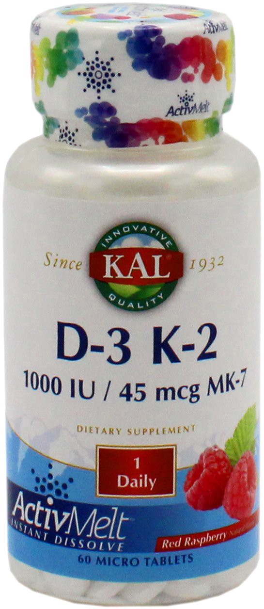 slide 1 of 1, KAL D3 & K2 25mcg / 45 Mcg Raspberry Activmelt Micro Tablets, 60 ct