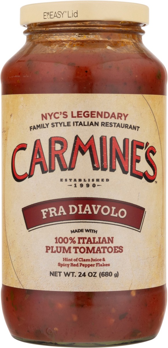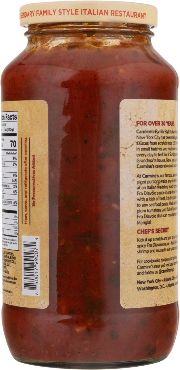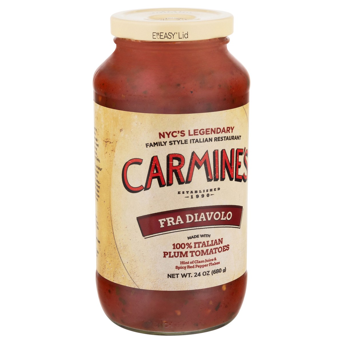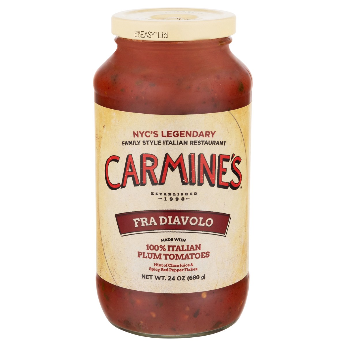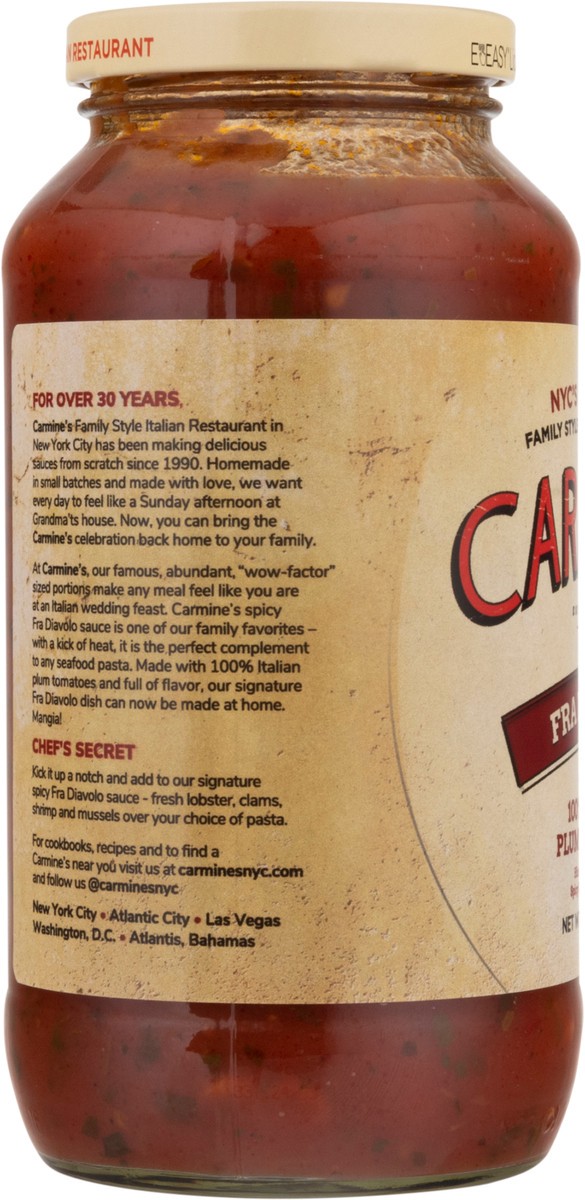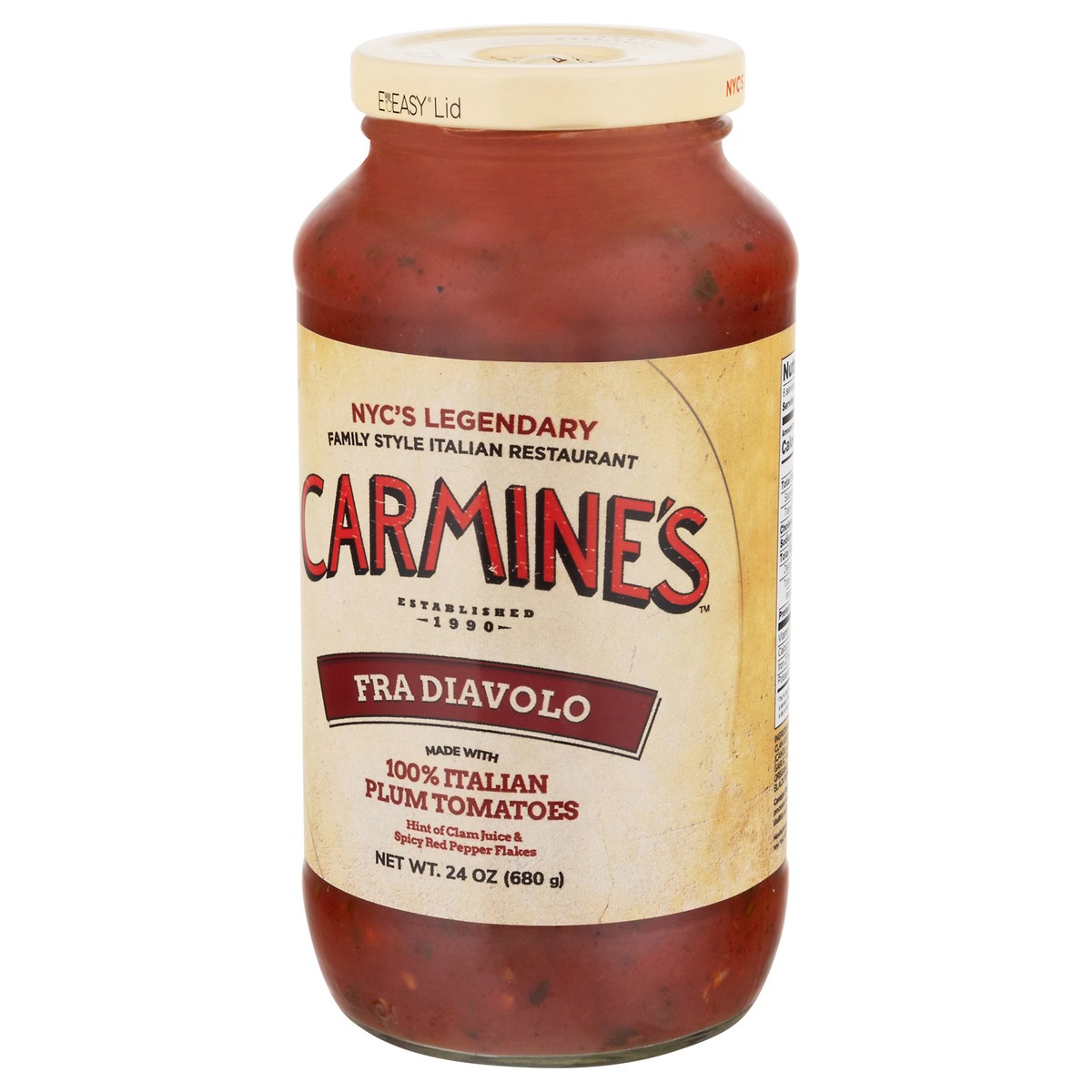 Carmine's spicy Fra Diavolo sauce is one of our family favorites-with a kick of heat, it is the perfect complement to any seafood pasta. Handcrafted by Carmine's, the legendary Family style Italian Re…